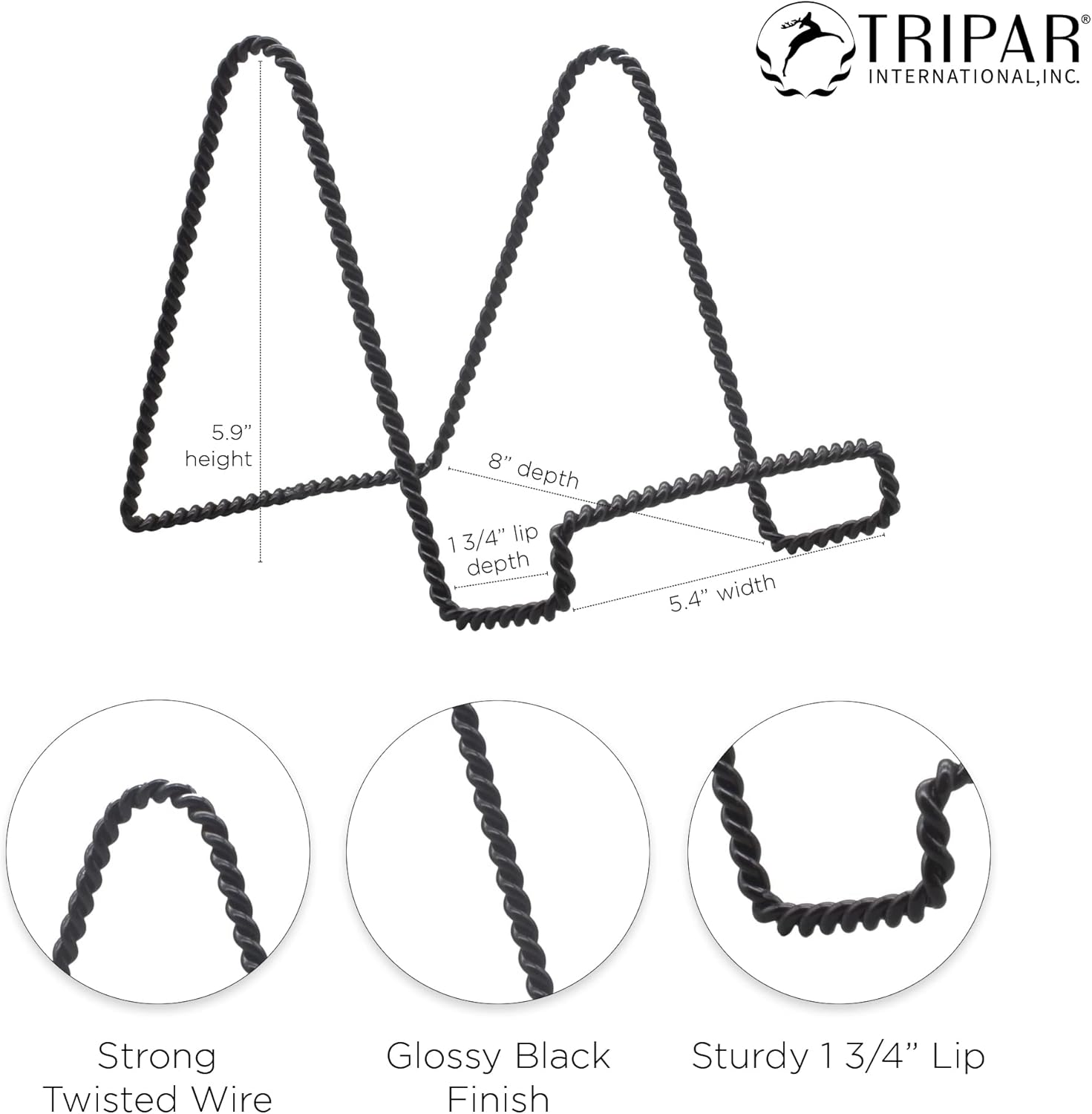 Tripar Decorative Twisted Wire Stand, Black Display (6 Inch Depth) Tabletop Easel Sleek & Modern Look - Perfect for Books, Plates, Photos & More