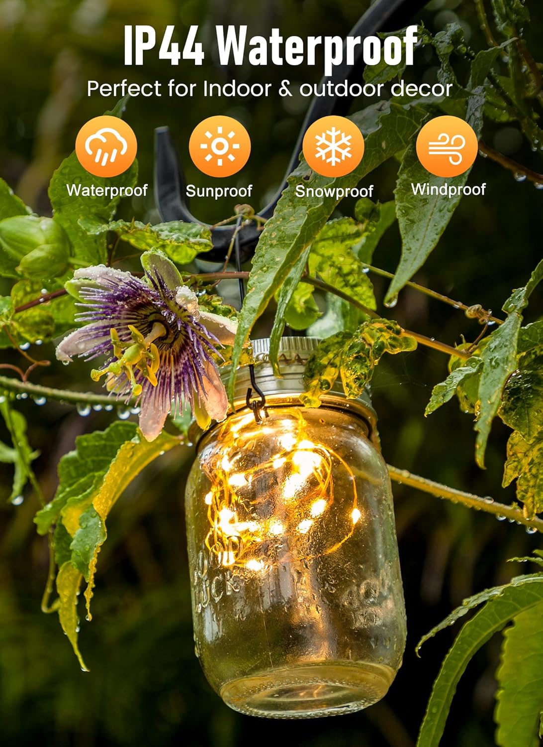 - Portable & Waterproof Design – These battery-operated fairy lights are perfect for areas without outlets or during power outages. Featuring an IP44 waterproof battery box and durable LED bulbs, they shine brightly even in wet weather—ideal for Christmas, weddings, and outdoor décor