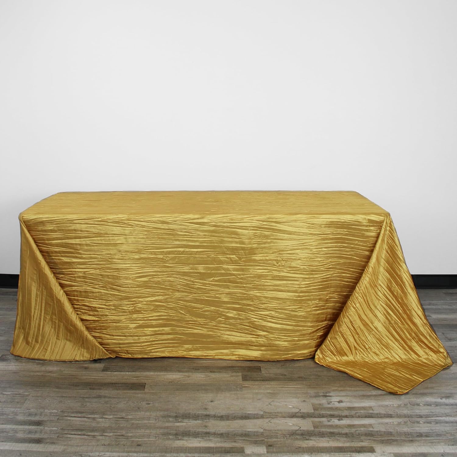YOUR CHAIR COVERS - 90 x 132 inch Rectangular Crinkle Taffeta Tablecloth - Gold, Rectangle Table Linens for 6 ft Rectangular Tables, Wedding Crushed Table Cloth