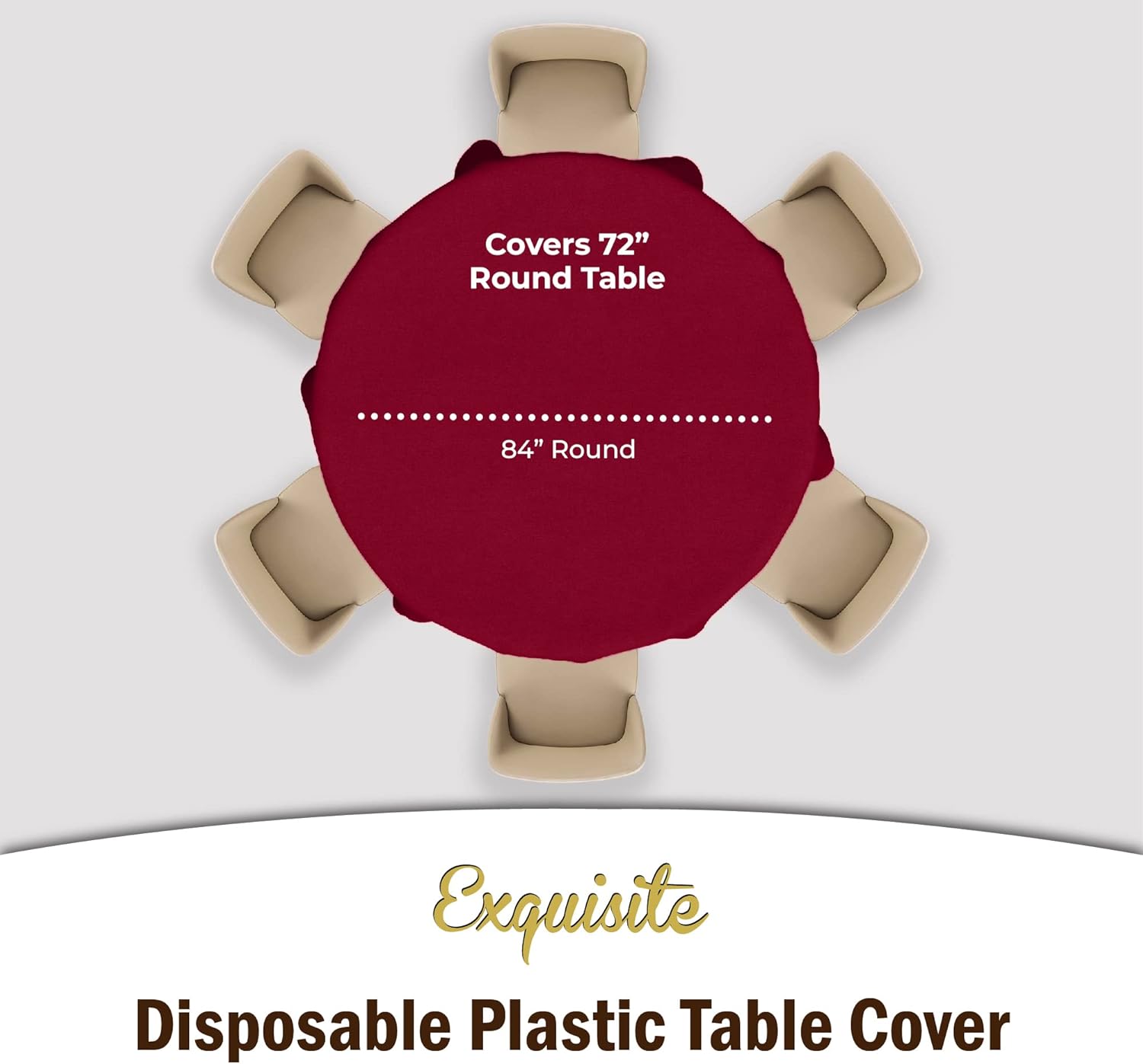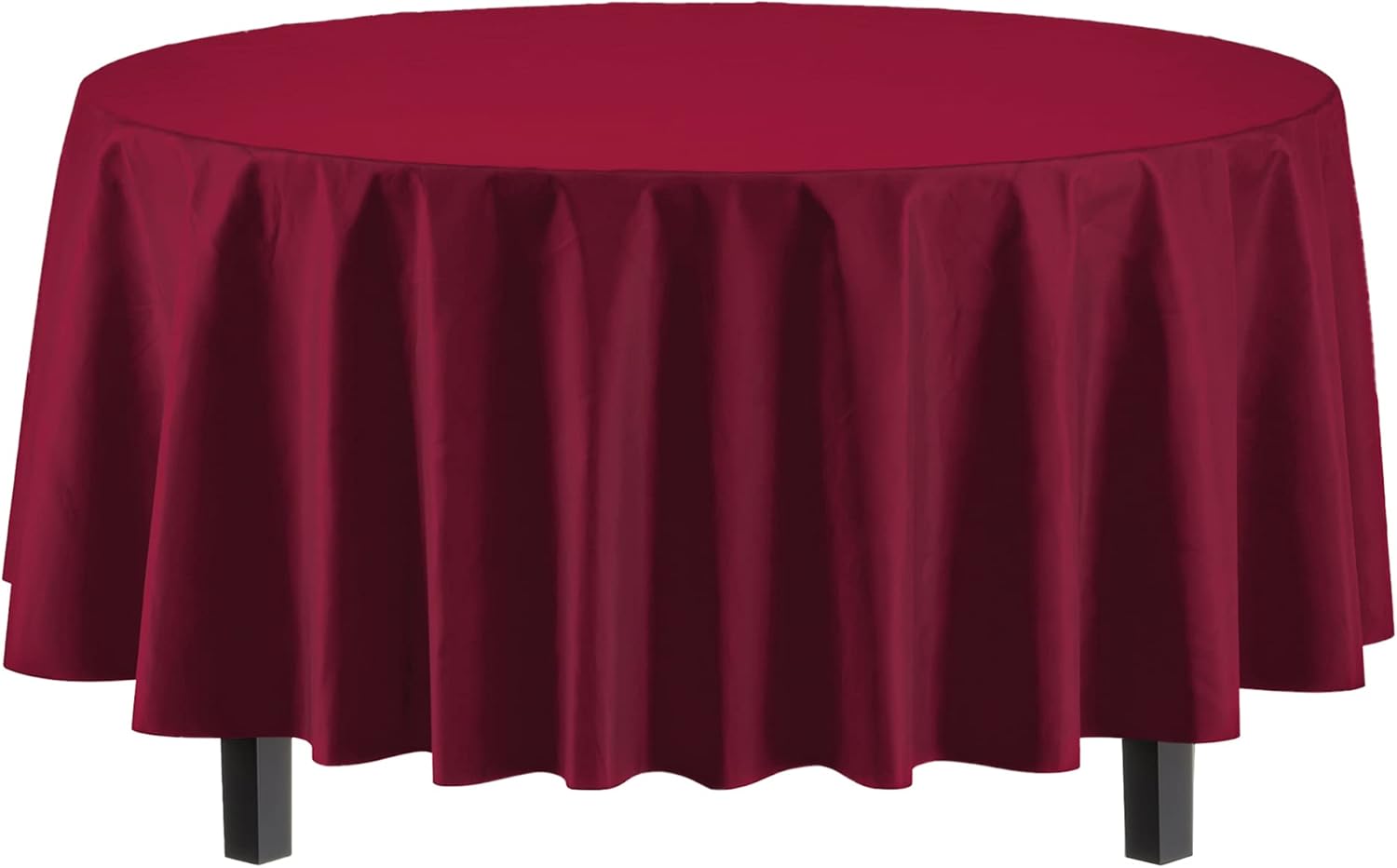- PREMIUM QUALITY PROTECTION: This 12 pack of 84 in. Burgundy Round plastic tablecloths will cover any table up to 7 feet. Unlike your typical paper table clothes these disposable table covers for parties are spill and waterproof!!!
