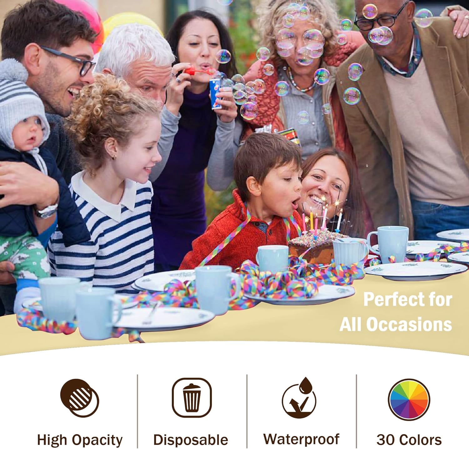 - HIGH OPACITY: covers any table with minimal transparency. Great plastic tablecoth for parties, weddings, holdiay party, , birthday parties, christmas, thanksgiving dinner, bbq, and any other color themed event.