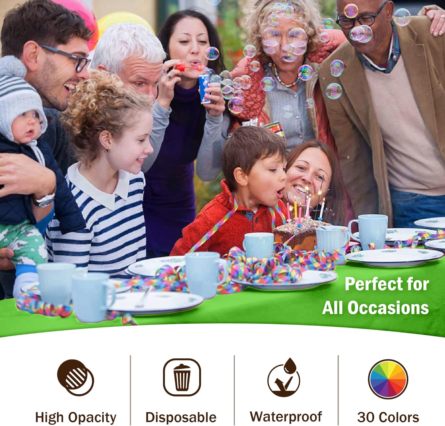 - HIGH OPACITY: covers any table with minimal transparency. Great plastic tablecoth for parties, weddings, holdiay party, , birthday parties, christmas, thanksgiving dinner, bbq, and any other color themed event.