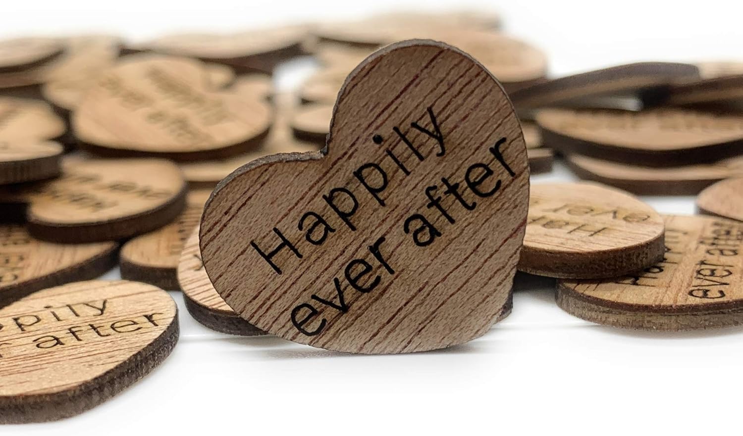 Wooden Heart Confetti ~ Happily Ever After ~ Wood Hearts, Wood Confetti Engraved Love Hearts- Rustic Wedding Decor (100 count)