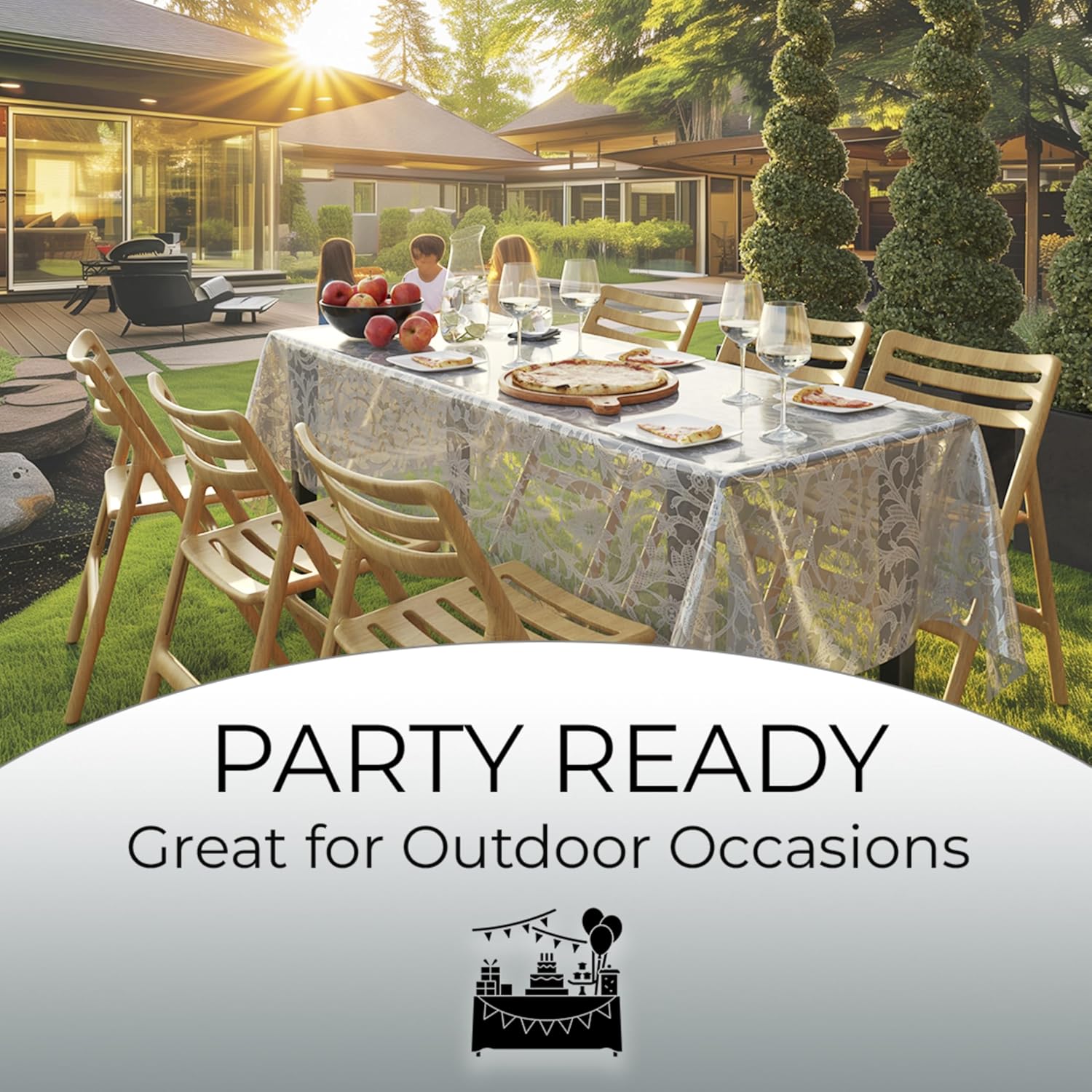 - All Occasions: Whether it's a picnic, party, or holiday gathering, these lace table cloth rectangle table covers are versatile enough for any event. Being the standard size of 8 ft table cloth rectangle table they make a great use as a picnic table cover, outdoor table cover for parties, or elegant outdoor table clothes to elevate any occasion effortlessly.