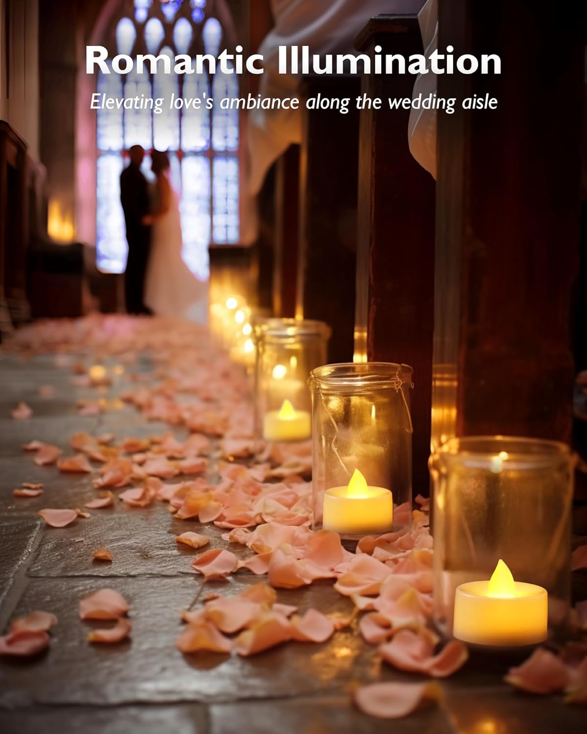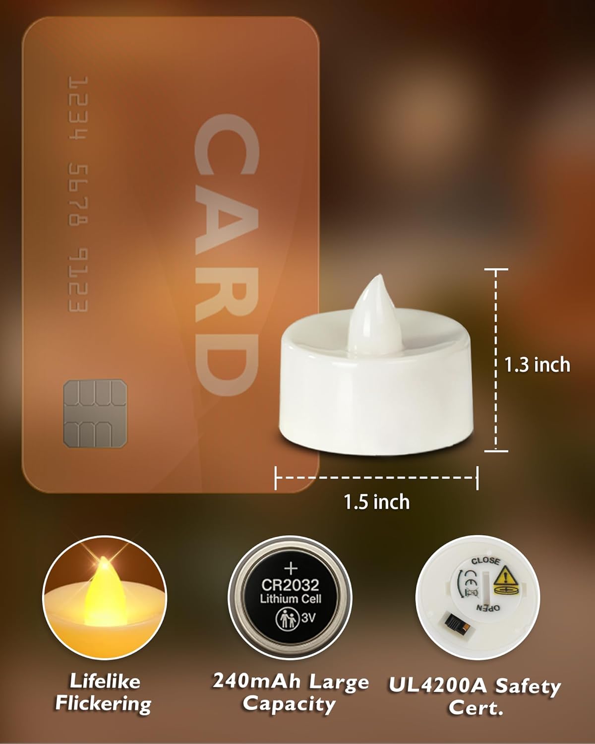 - 200+HOUR: 240mah battery capacity provides 200 hours of illumination, 40X to traditional wax tea lights, ensuring the tea candles work last throughout your wedding/party/holidays