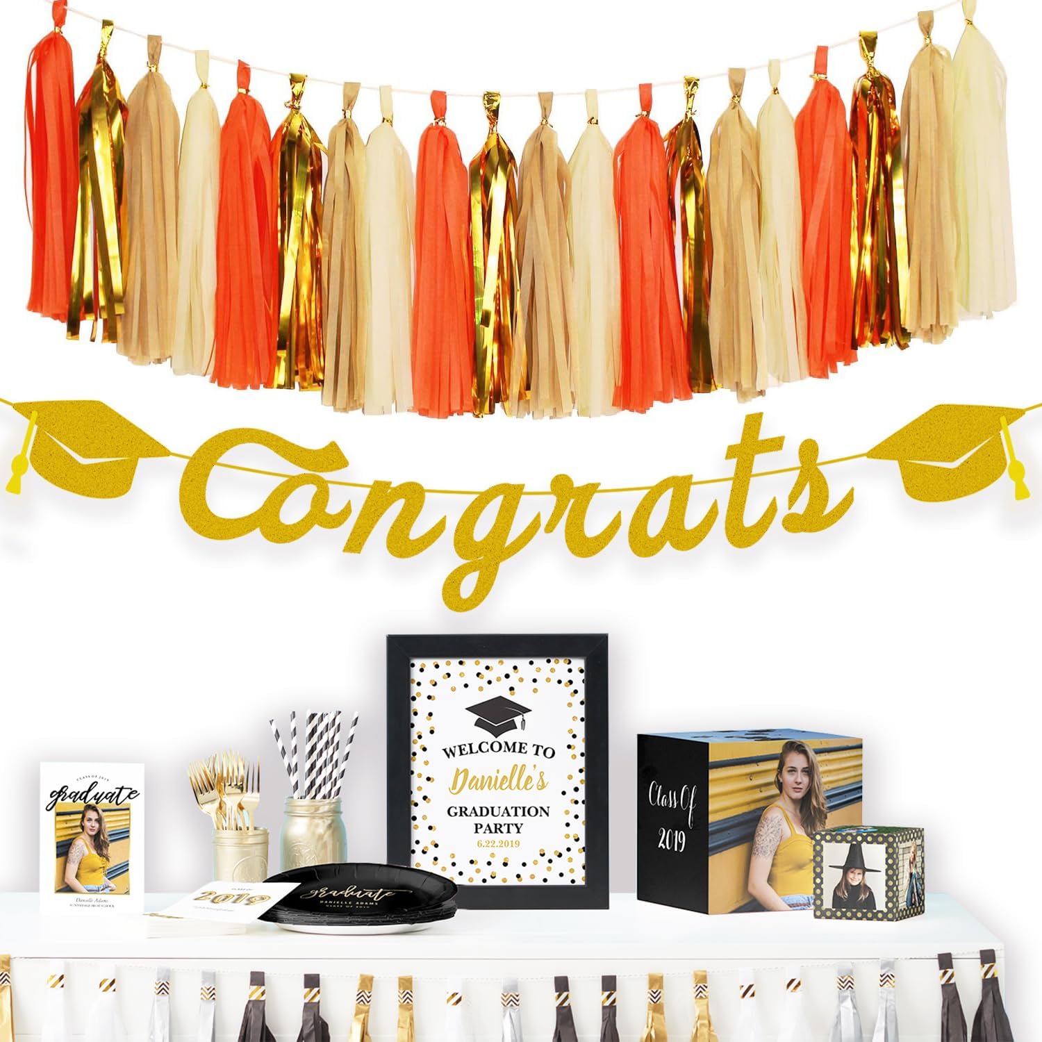 Tassel Garland, Tissue Paper Tassels Banner for Graduation Party Decorations, Thanksgiving, First Birthday Party Decorations, 20 pcs DIY Kits (Orange+Metallic Gold+Tan+Ivory)