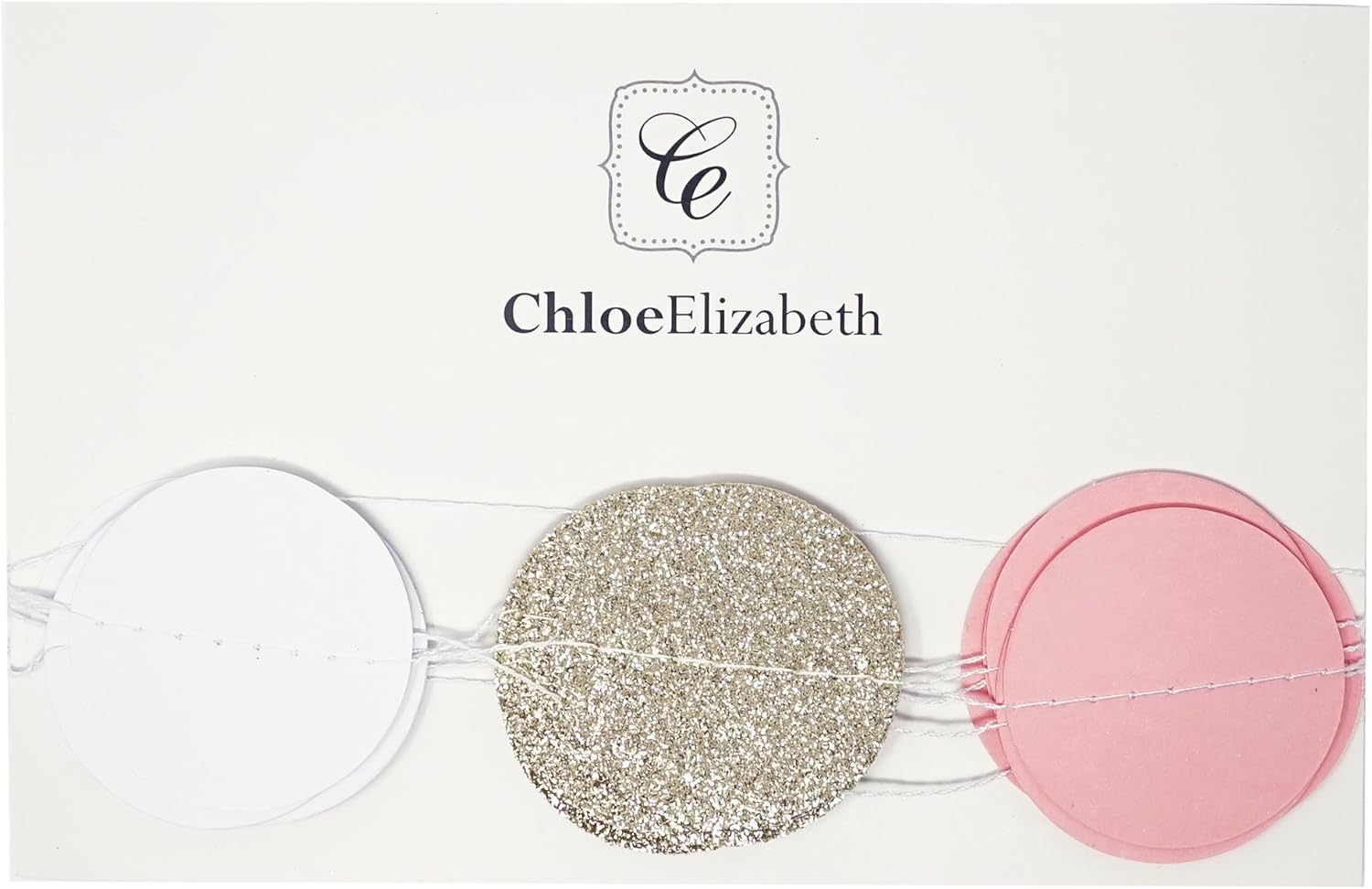 Chloe Elizabeth Circle Dots Paper Party Garland Streamer Backdrop (10-Pack, 10 Feet Per Garland, 100 Feet Total) - Pink, White, Gold Glitter
