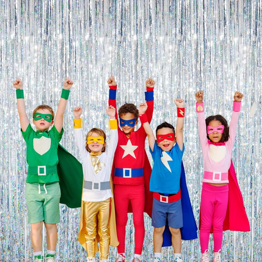 - Package Includes:3 pack shiny silver foil fringe curtains,3.2 ft x 8.2 ft each,suitable for hanging on a door or coverage a wall fully