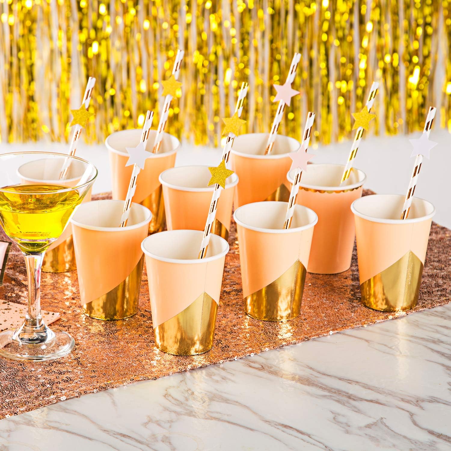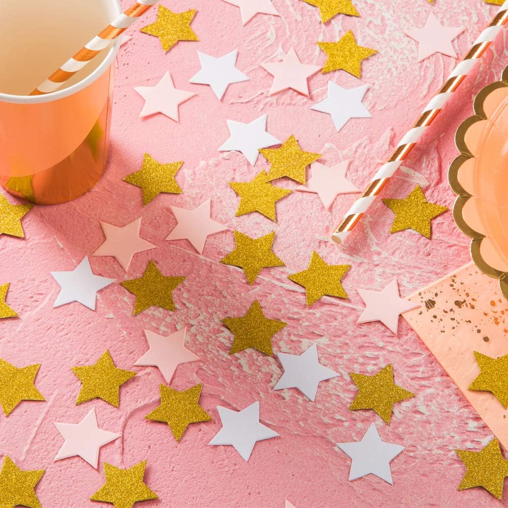 MOWO Glitter Five Stars Confetti Wedding Party Decor and Table Decor, 1.2’’ in Diameter (glitter gold,pink,white,200pc)