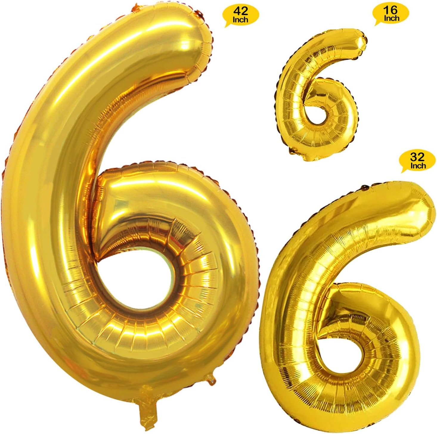 - Package Includes:Number 6 Balloons*3,42 inch,32 inch,16inch each,Straw*1