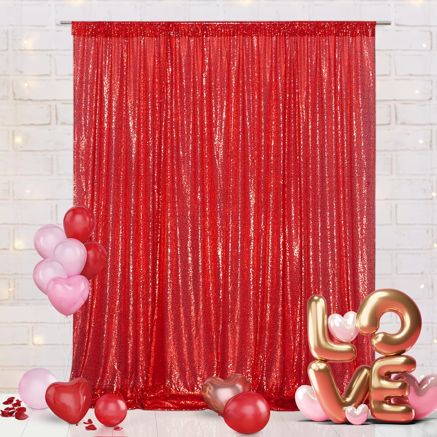 Eternal Beauty Red Sequin Backdrop, 7x7 Ft Glitter Background Curtains for Christmas Shimmer Photography Party Wedding Birthday Back Drop Decor