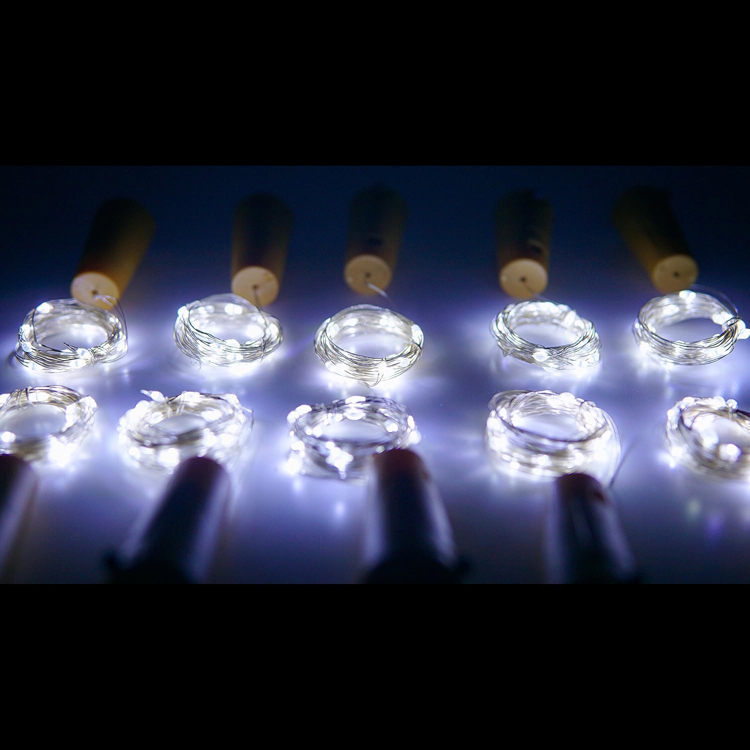 10 Pack 20 LED Wine Bottle Cork Lights Mini Fairy String Lights Copper Wire, Battery Operated Starry Lights for DIY, Festival, Wedding, Party, Indoor, Outdoor Decoration (Cool White)
