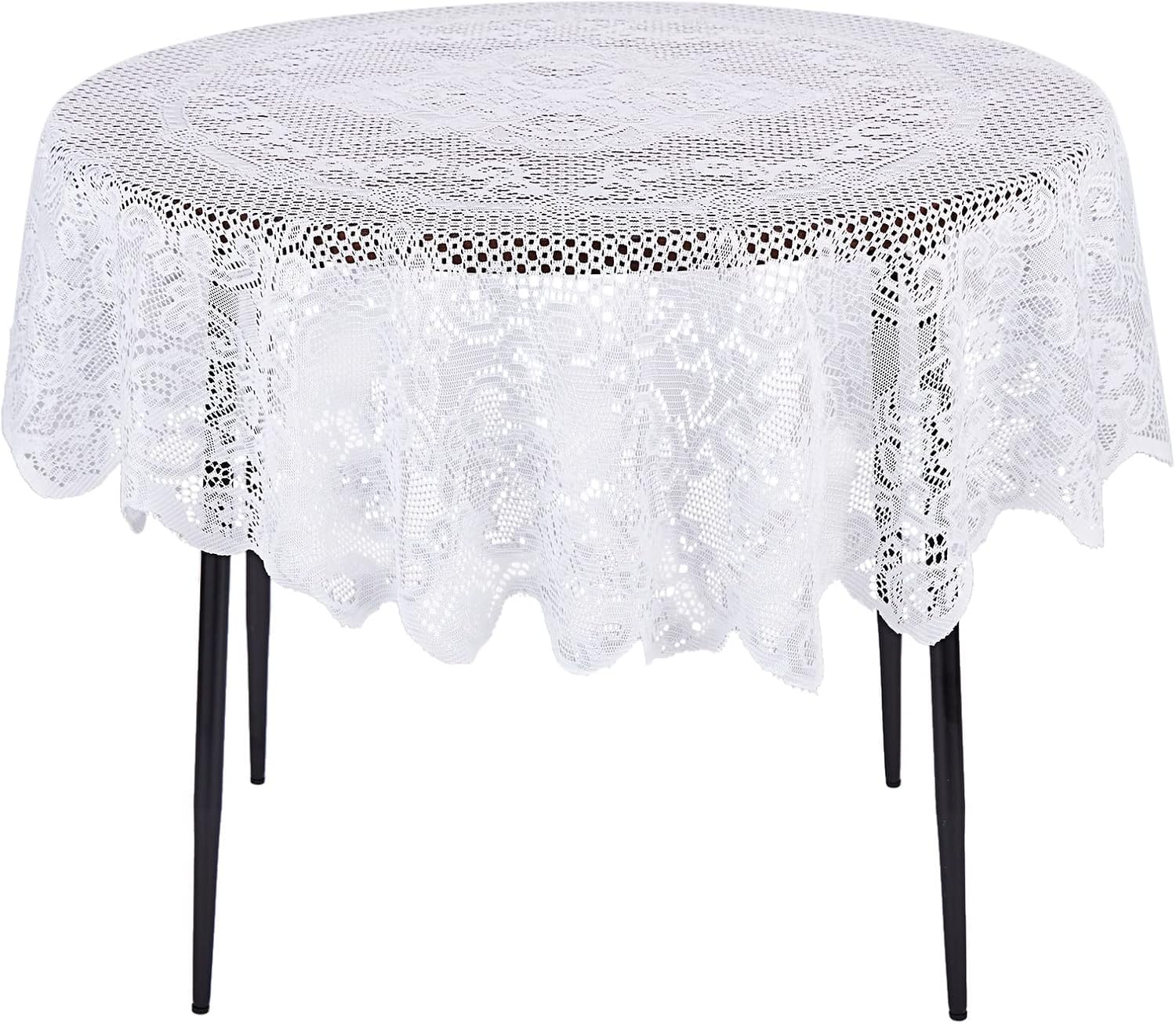 - Vintage Elegance: Juvale's Round Lace Tablecloth features a 59-inch diameter with intricate floral patterns and scalloped edges. This white lace tablecloth round enhances your home decor by adding a touch of vintage charm and sophistication
