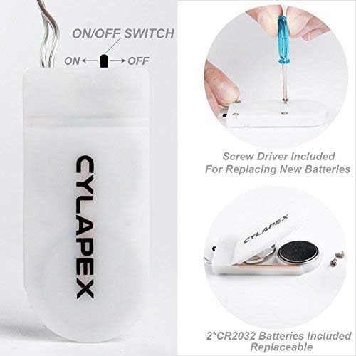 - What You Get: A pack of 6 CYLAPEX LED fairy lights string and a handy screwdriver for battery replacement. Designed for durability, the LED fairy string lights have a lifespan of up to 50,000 hours with regular use. The waterproof fairy lights (excluding the battery case) ensure reliable performance for all your indoor and outdoor decorating needs.