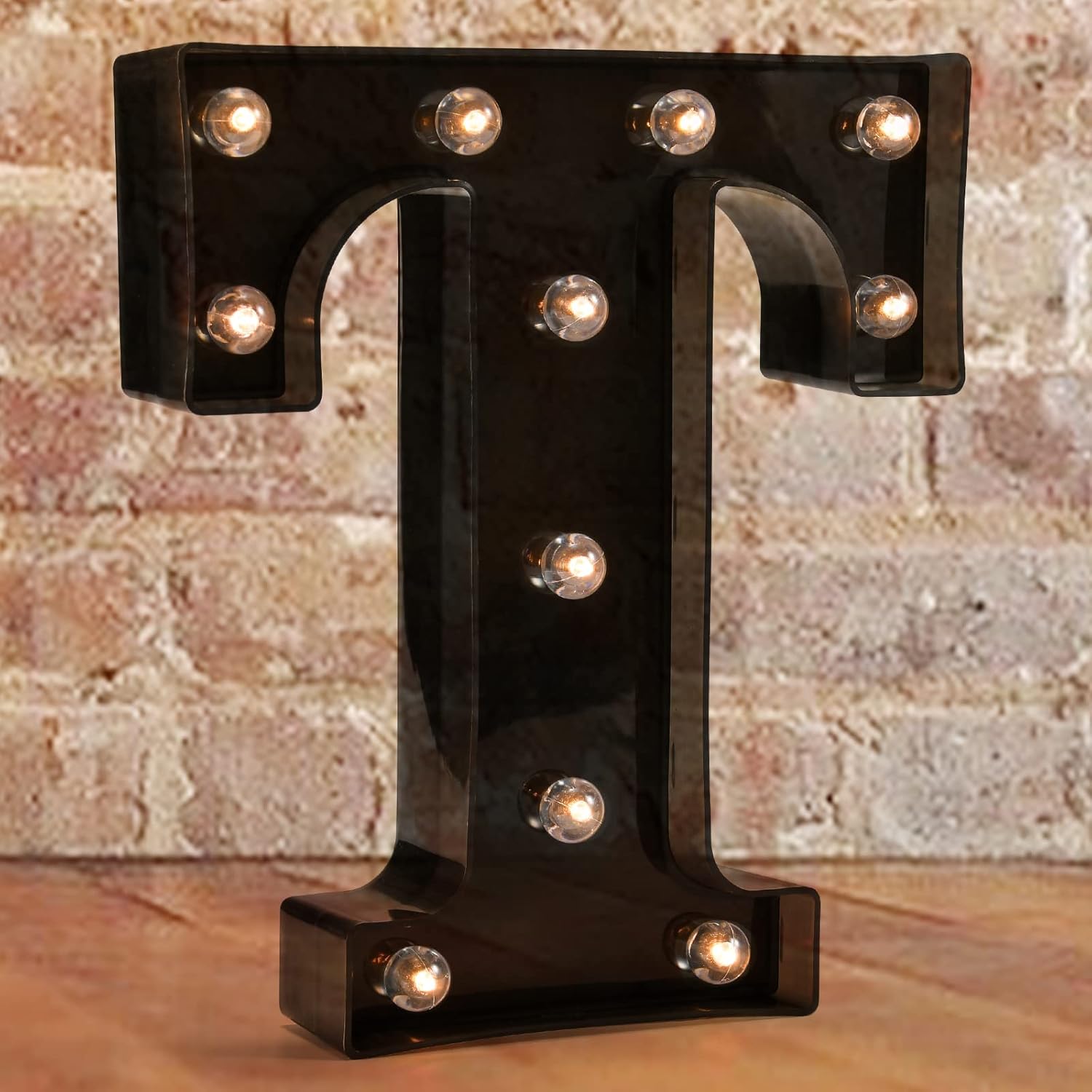 Decorative LED Illuminated Letter Marquee Sign - Alphabet Marquee Letters with Lights For Wedding Birthday Party Christmas Night Light Lamp Home Bar Decoration T, Black
