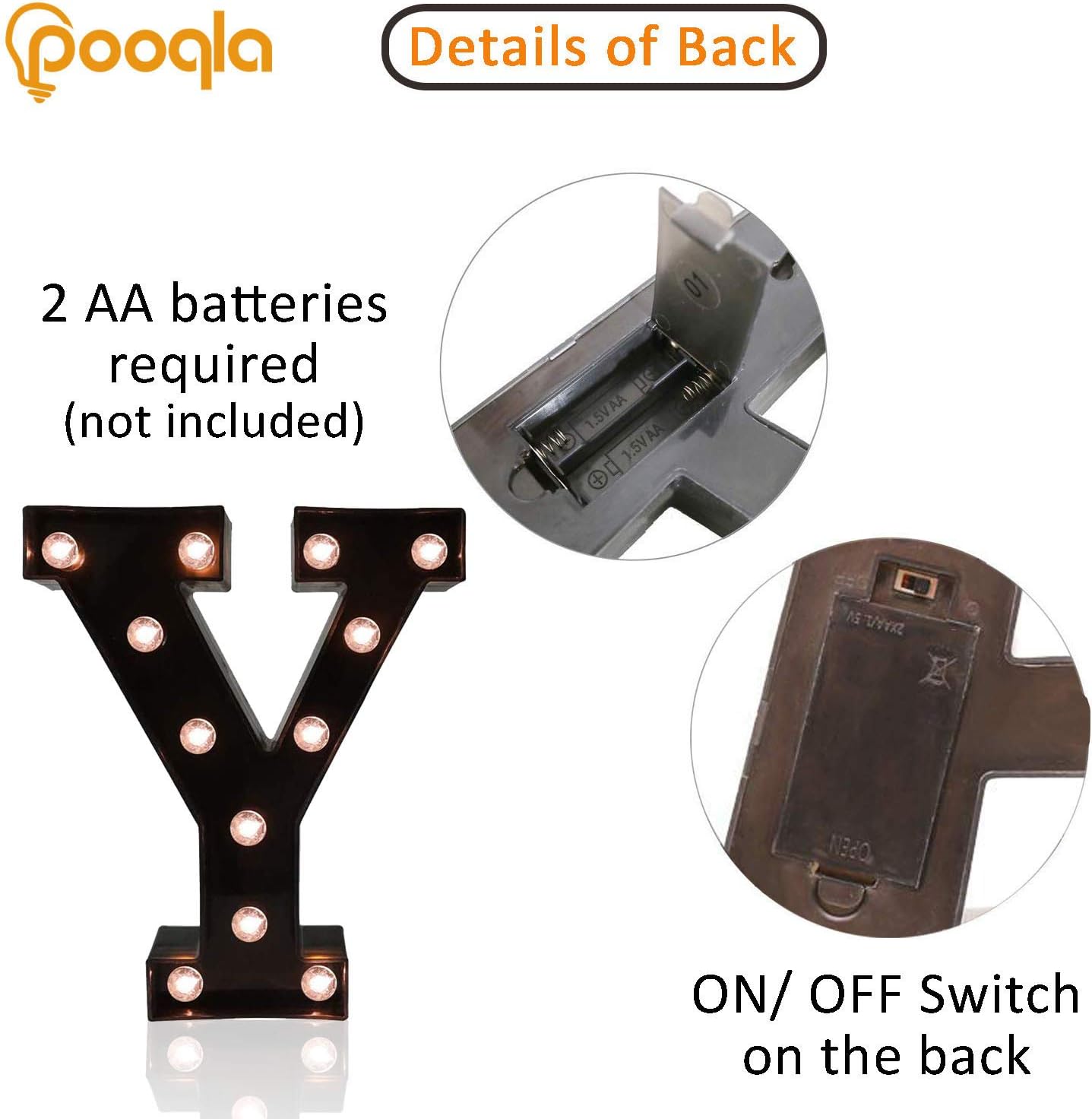 Decorative LED Illuminated Letter Marquee Sign - Alphabet Marquee Letters with Lights For Wedding Birthday Party Christmas Night Light Lamp Home Bar Decoration Y, Black
