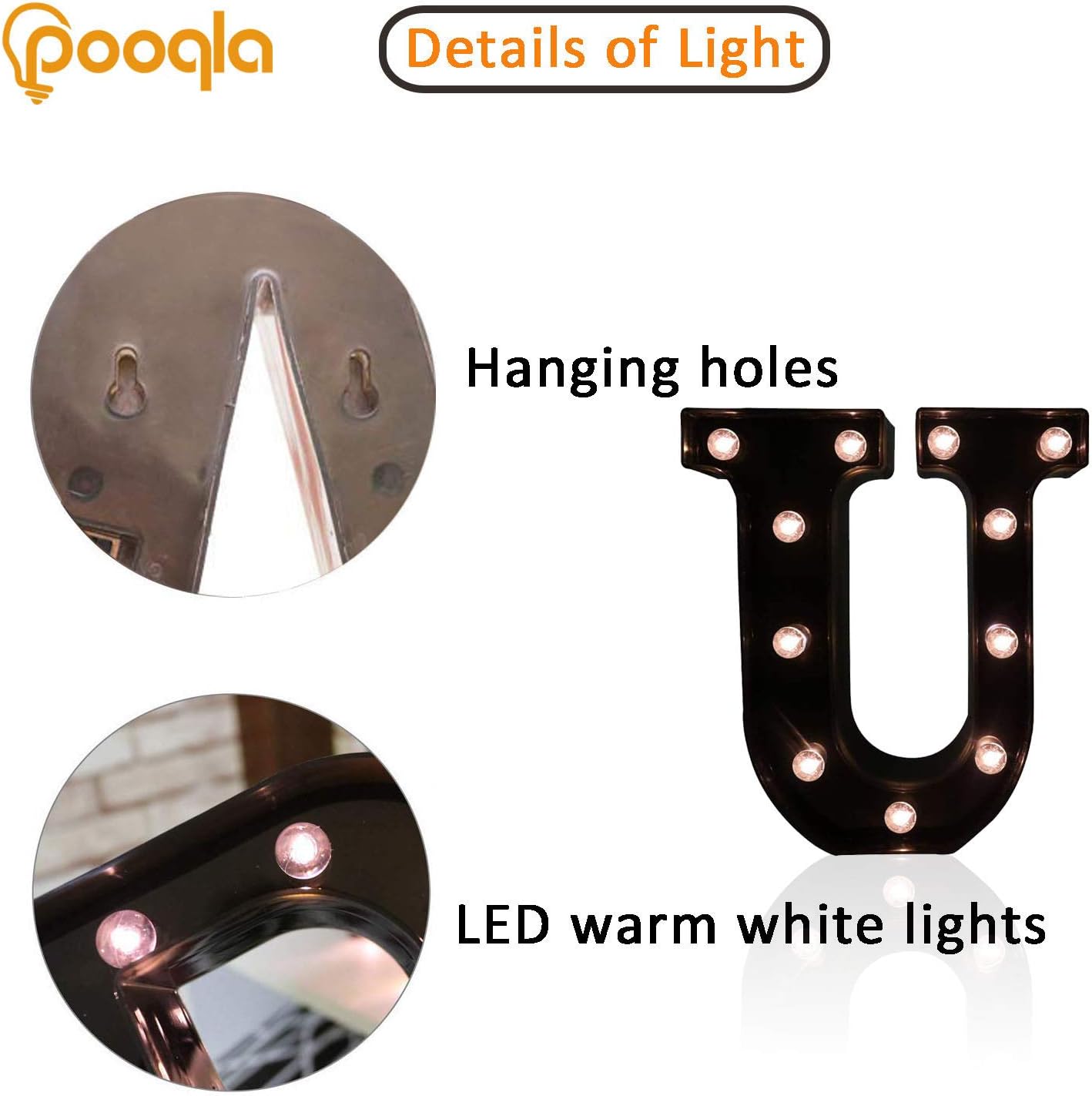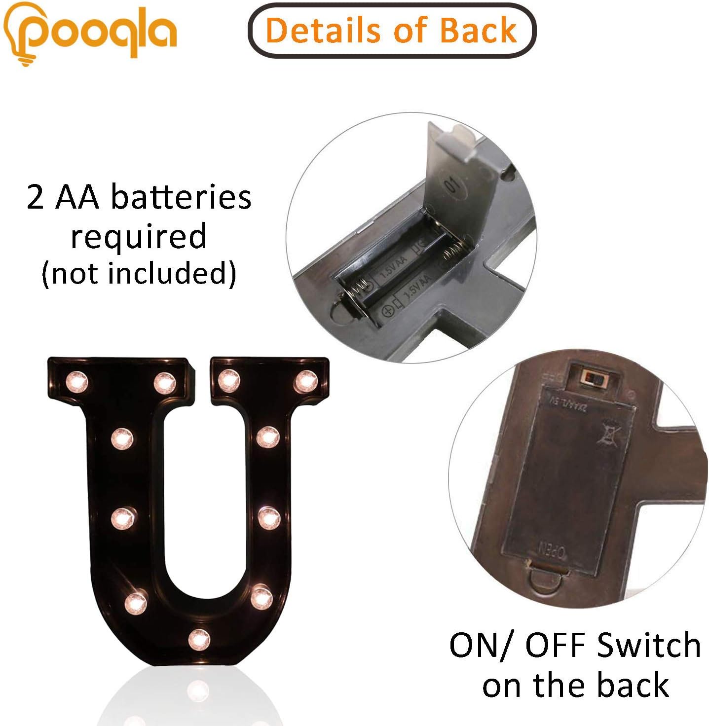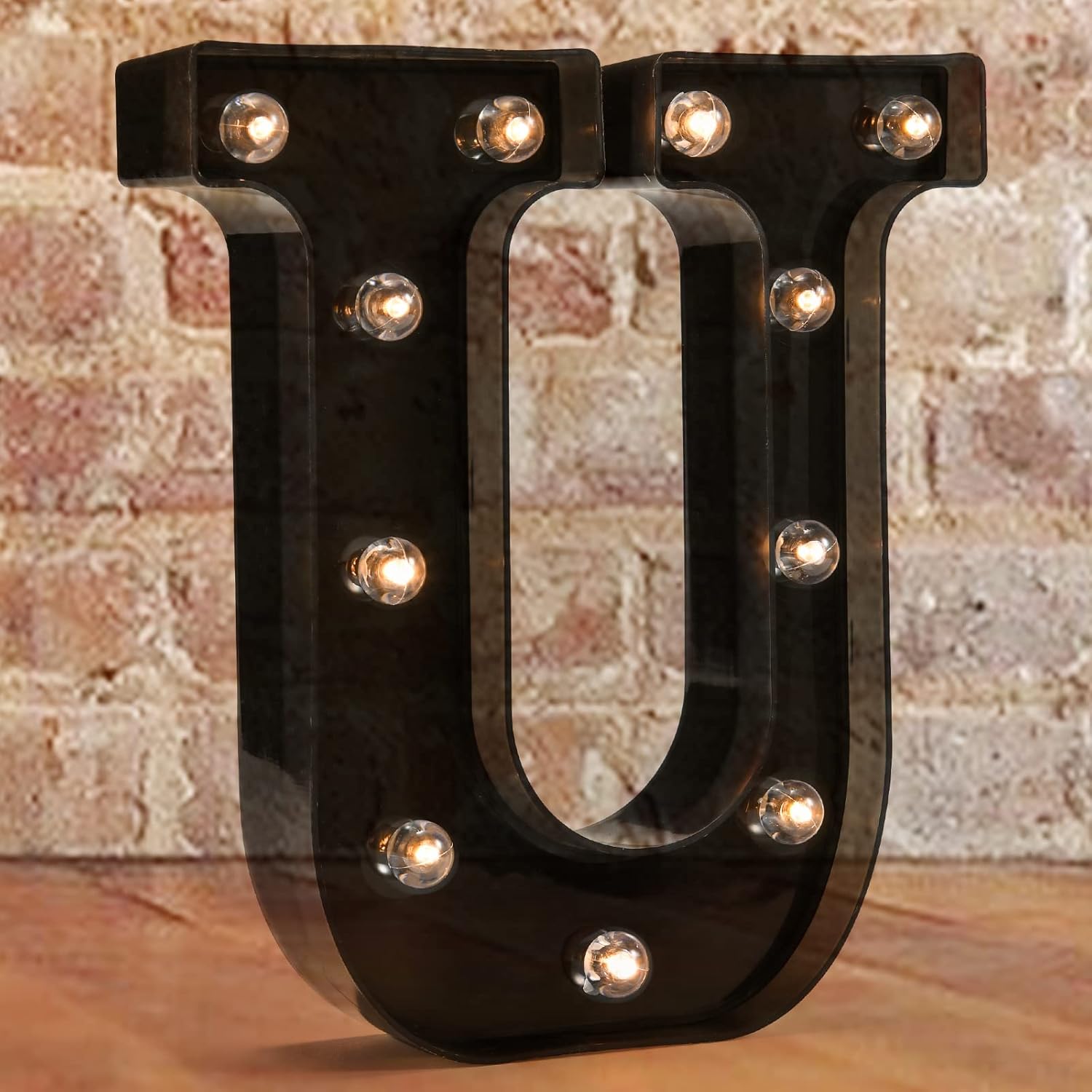 Decorative LED Illuminated Letter Marquee Sign - Alphabet Marquee Letters with Lights For Wedding Birthday Party Christmas Night Light Lamp Home Bar Decoration U, Black