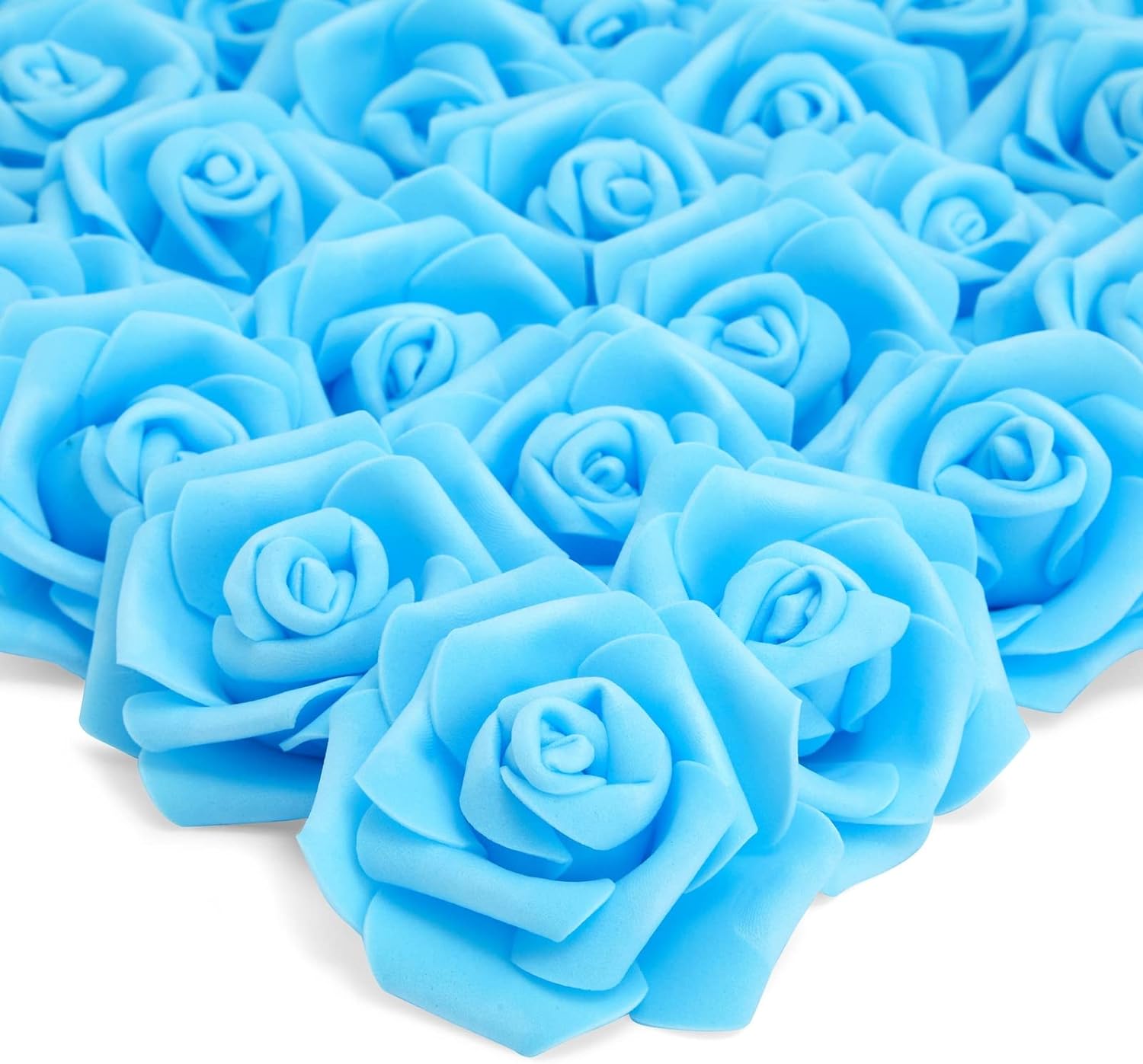 Juvale Faux Flowers for Wedding Decor - 100 Pack, 3-Inch Heads - Blue Silk Flowers - Artificial Roses for Centerpiece Table Decorations & Vase Filler