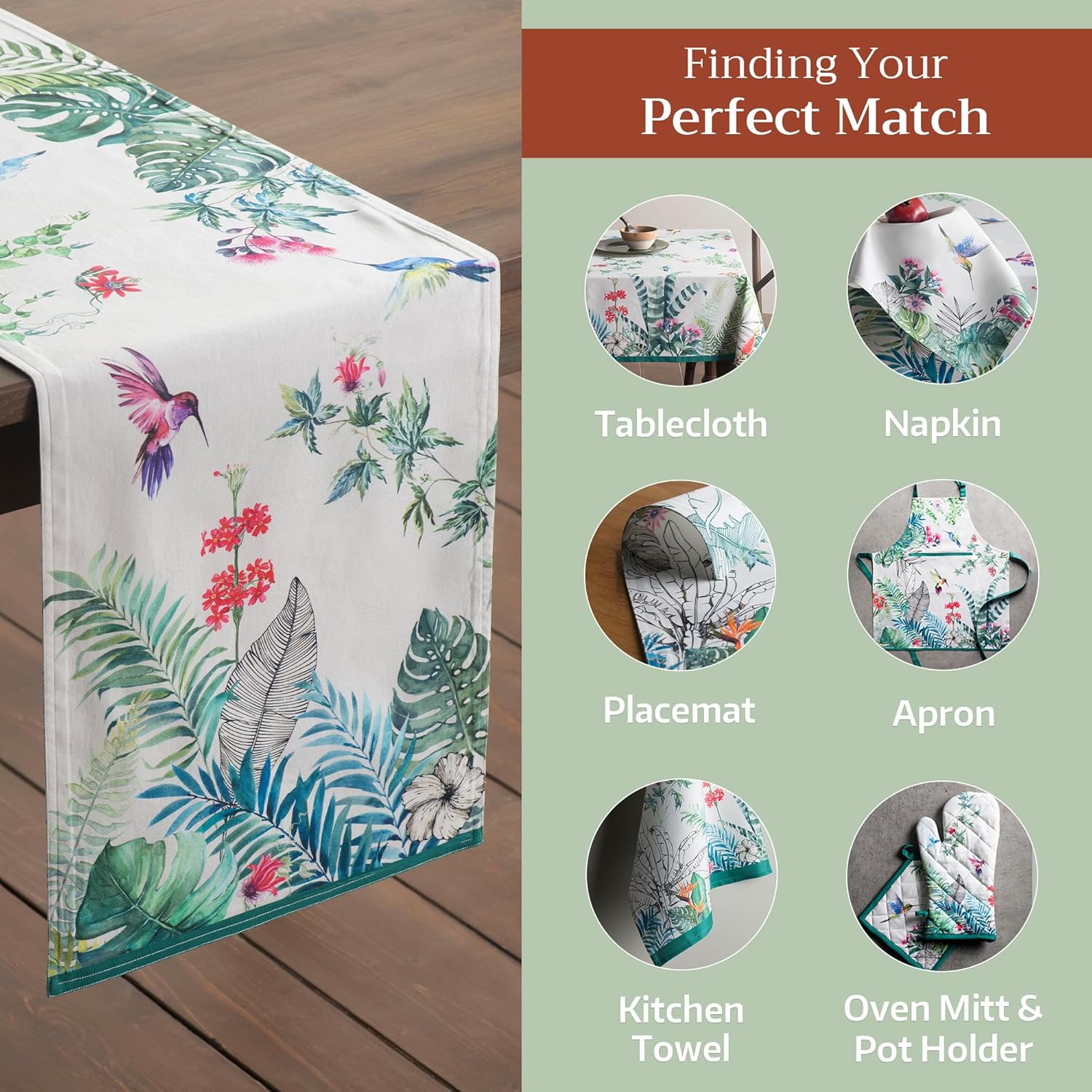 Maison d' Hermine Table Runner 100% Cotton Single Layer Table Runners 72 inches Long Decorative for Home Kitchen Dining Party Baby Shower Wedding Bridal Shower Spring Summer (Tropiques, 14.50" x 72")