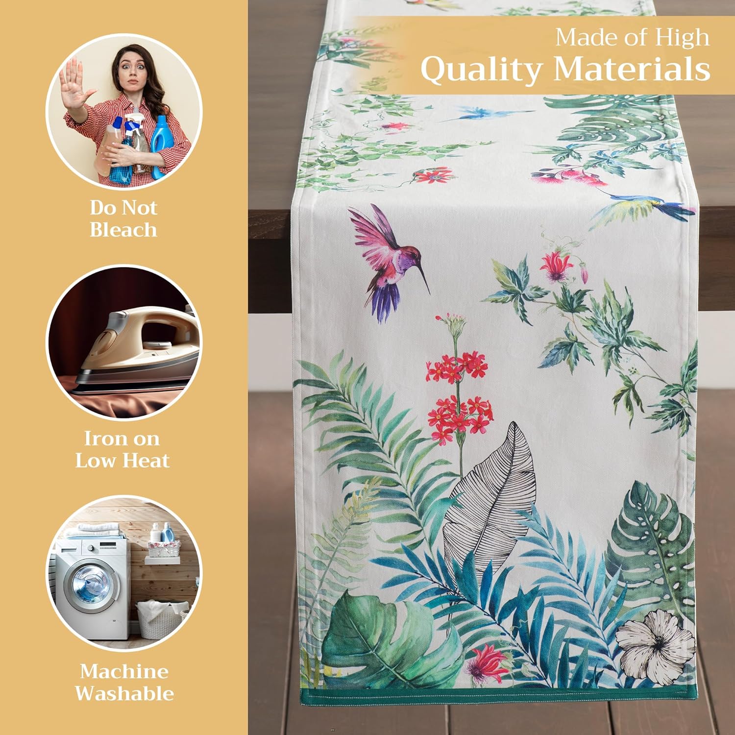 - Easy care & maintenance: Crafted from 100% cotton, this table runner is machine washable with like colors, do not bleach. Tumble dry on low and warm iron if needed. Durable and easy to maintain for everyday or seasonal use.