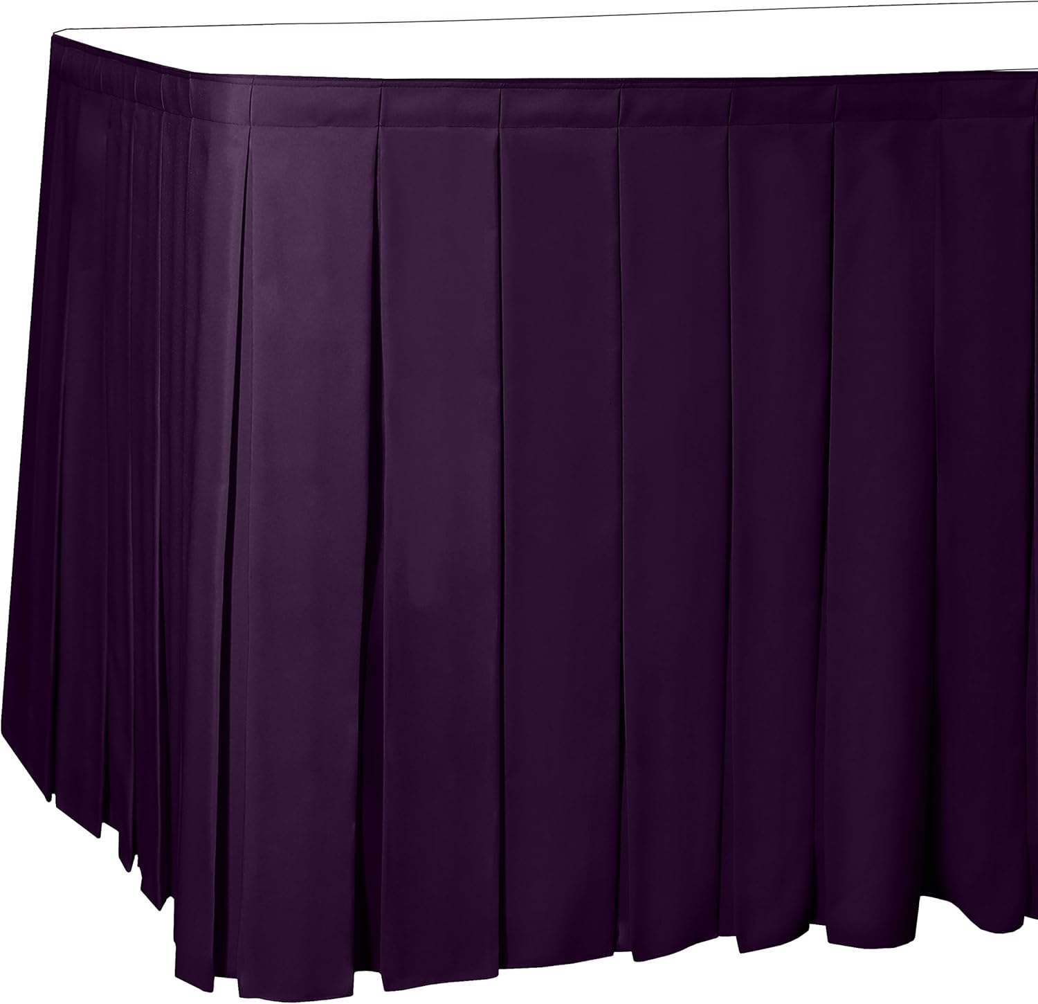 Ultimate Textile Pleat Polyester Fabric Table Skirt - Machine Washable Flame Resistant with Clips for Events, Weddings & Trade Shows, Cut & Sewn in Paterson, NJ - Aubergine, 7' Box Pleat