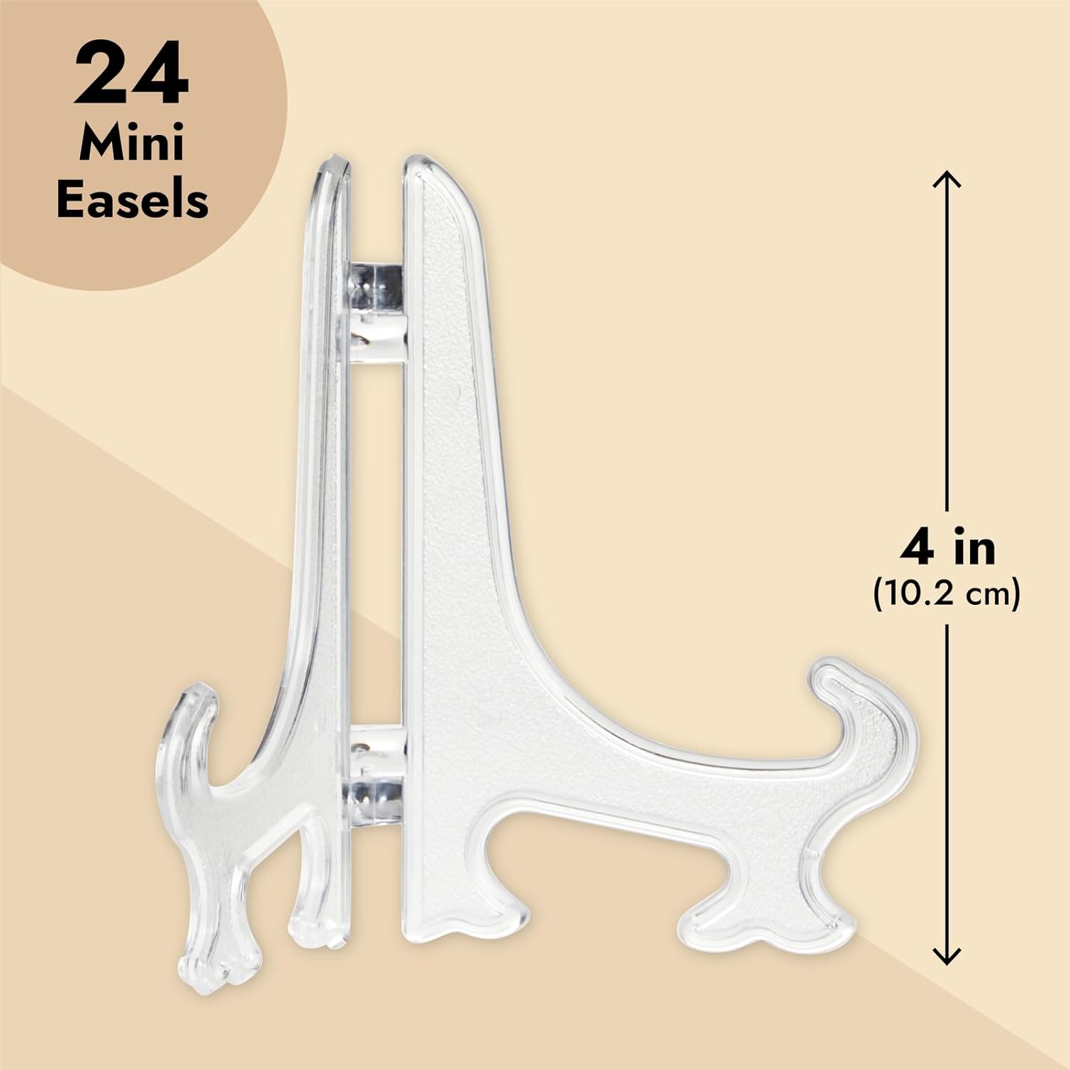 - Sophisticated Display Solution: Juvale's Clear Mini Easels elegantly showcase items with their minimalist design. These 4-inch clear plastic easels provide a stable platform, making them ideal as a picture stand or a decorative plate holder