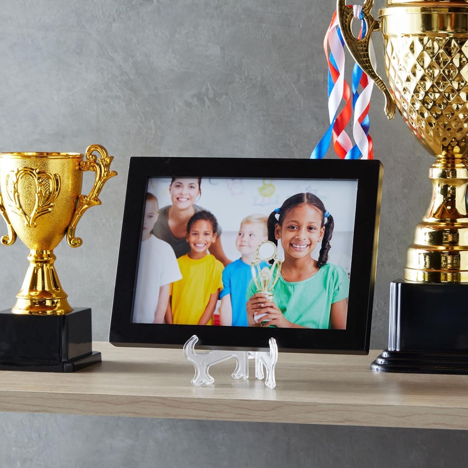 - Durable and Lightweight: Crafted from clear, lightweight plastic, these picture holder stands combine reliability with portability. Their pedestal base ensures stability, whether used as a card holder stand or a photo display