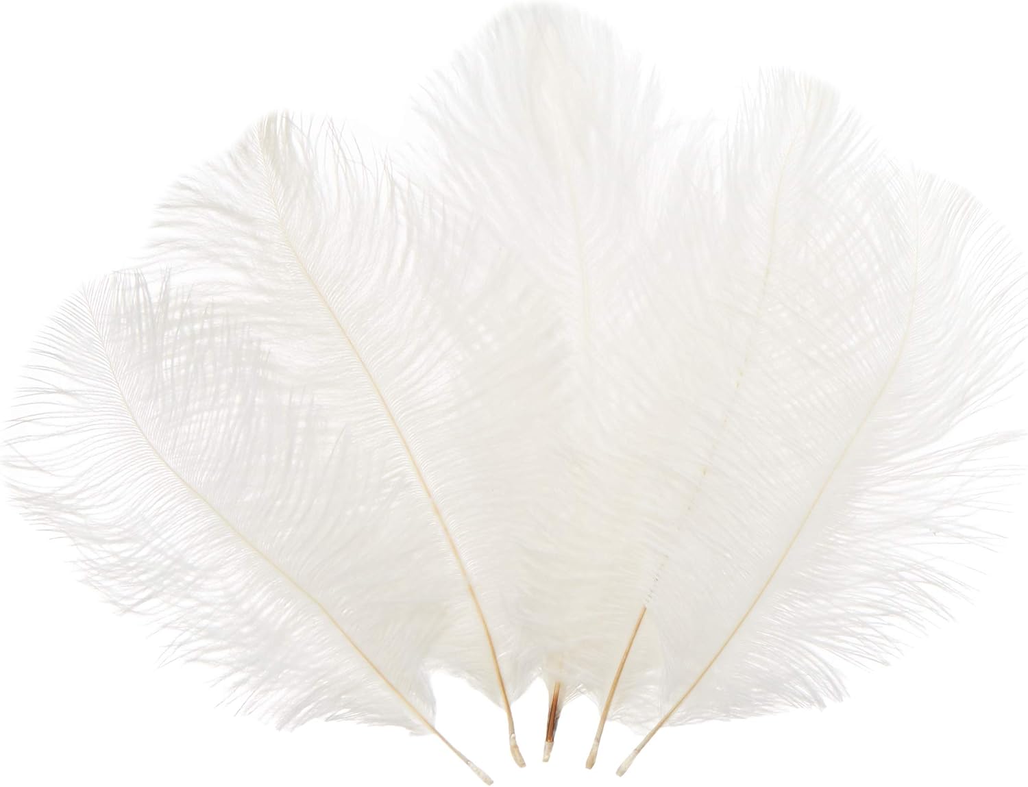 Sowder 6-8inch(15-20cm) Ostrich Feathers Plume for Wedding Centerpieces Home Decoration Pack of 10pcs(White)