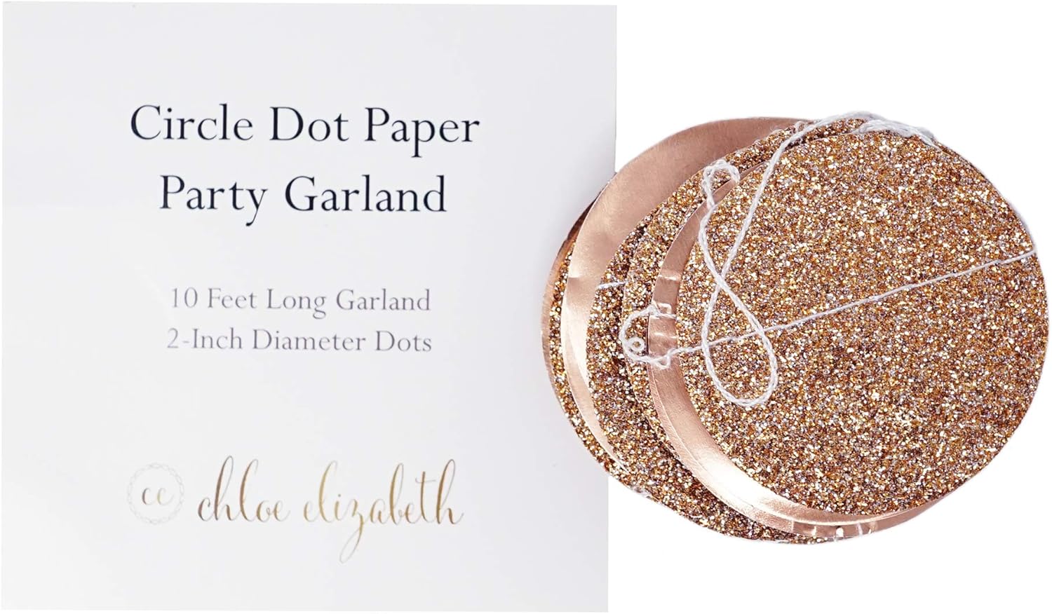 Circle Dots Paper Party Garland Streamer Backdrop (10 Feet Long) - Rose Gold Glitter