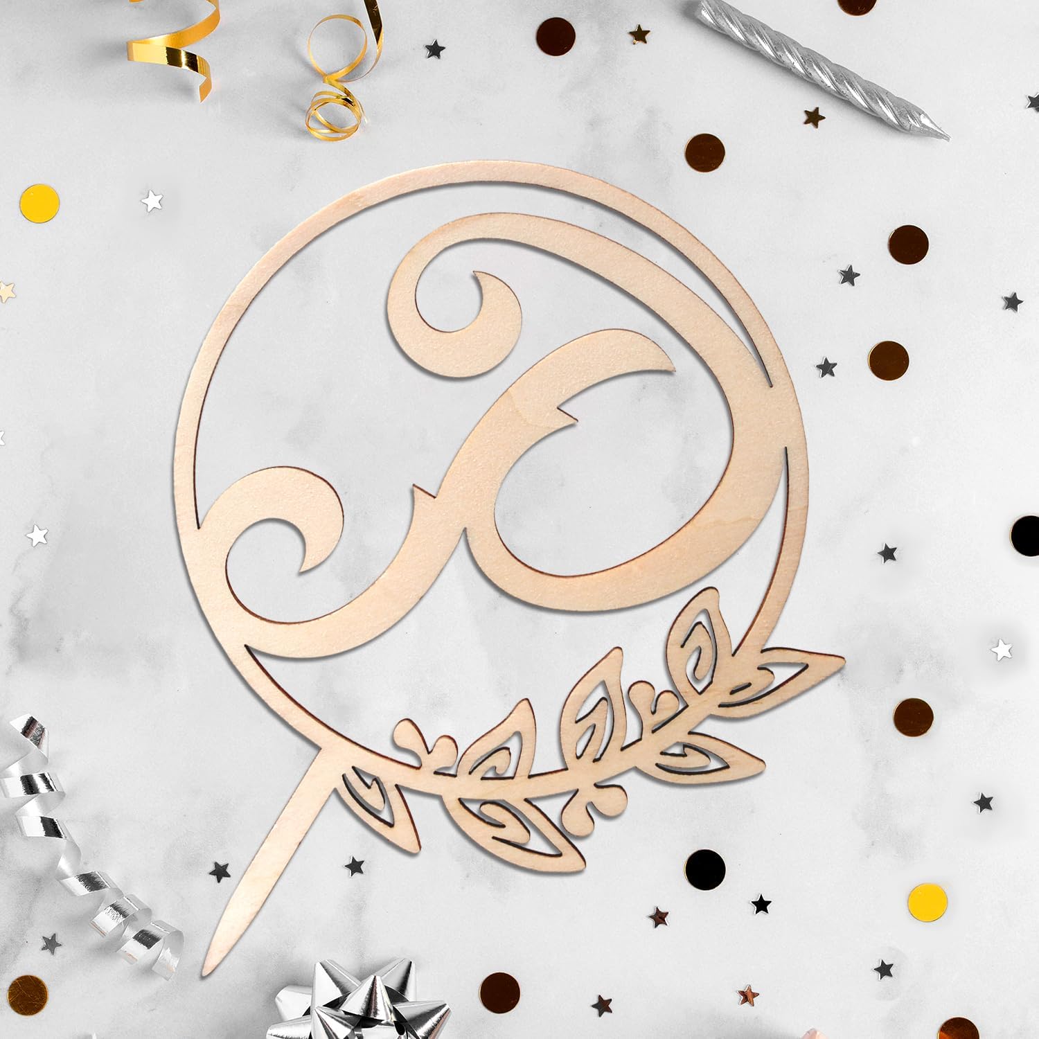 LINGTEER Personalized Inital Letter P Wooden Cake Topper Perfect for Birthday Rustic Wedding Anniversary Party Keepsake Decoration