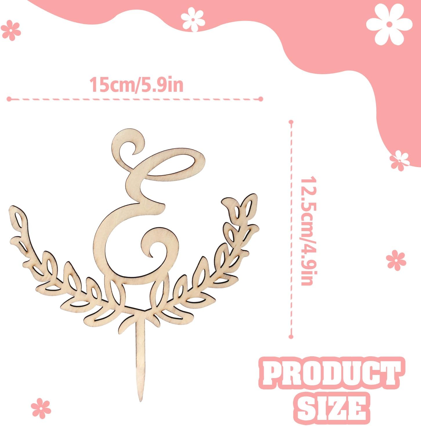 LINGTEER Personalized Inital Letter E Wooden Cake Topper Perfect for Birthday Rustic Wedding Anniversary Party Keepsake Decoration