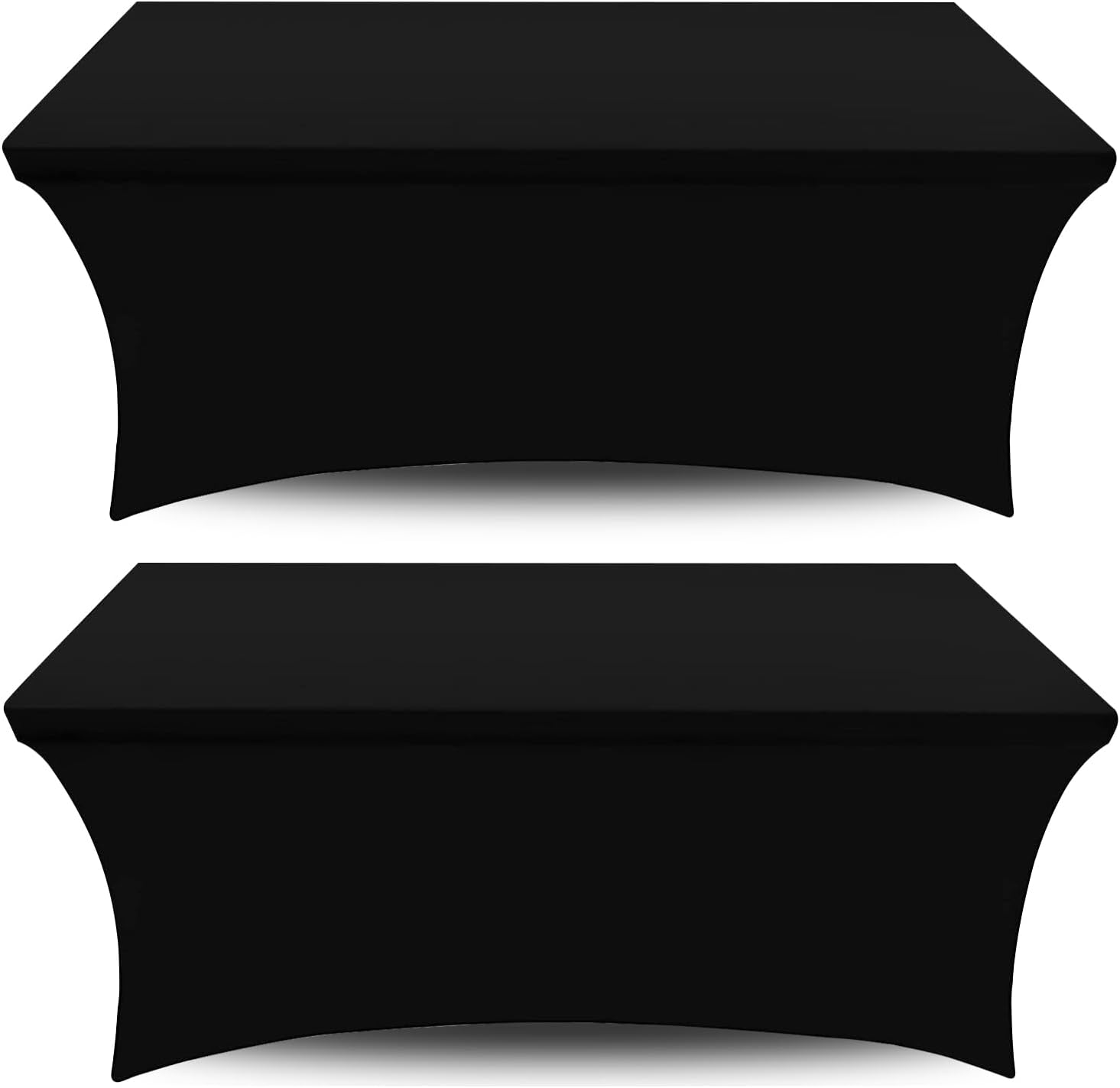 Black Spandex Table Covers 6ft, 2 Pack - Elegant, Durable, Stretchy 6ft Table Cover Fitted, Wrinkle and Stain Resistant, Elastic Leg Pockets
