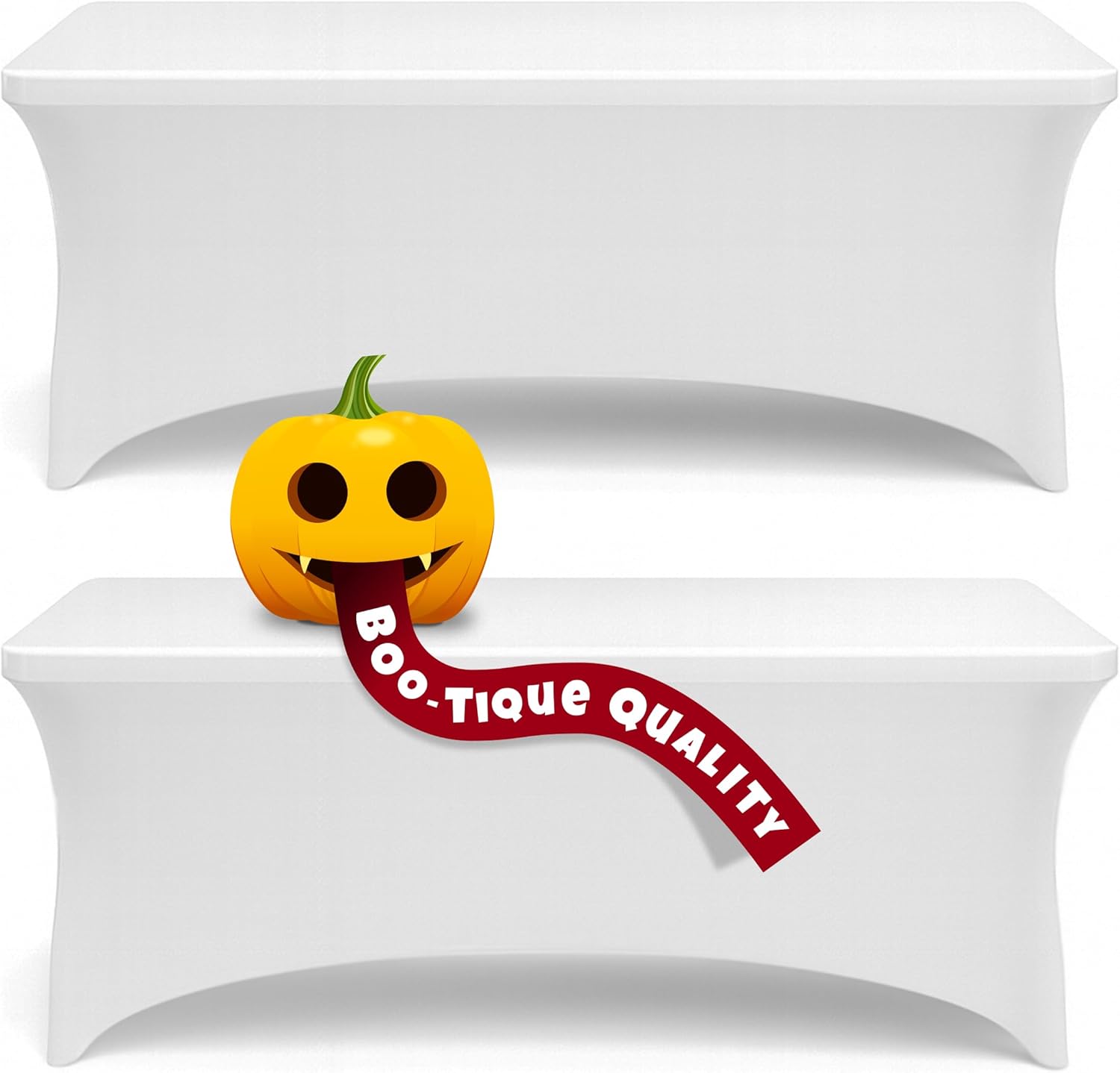 Stretch Spandex Table Covers 6FT, Pack of 2 Fitted Tablecloths for Rectangle Tables, Stretchy Wrinkle Resistant Folding Table Cover, White