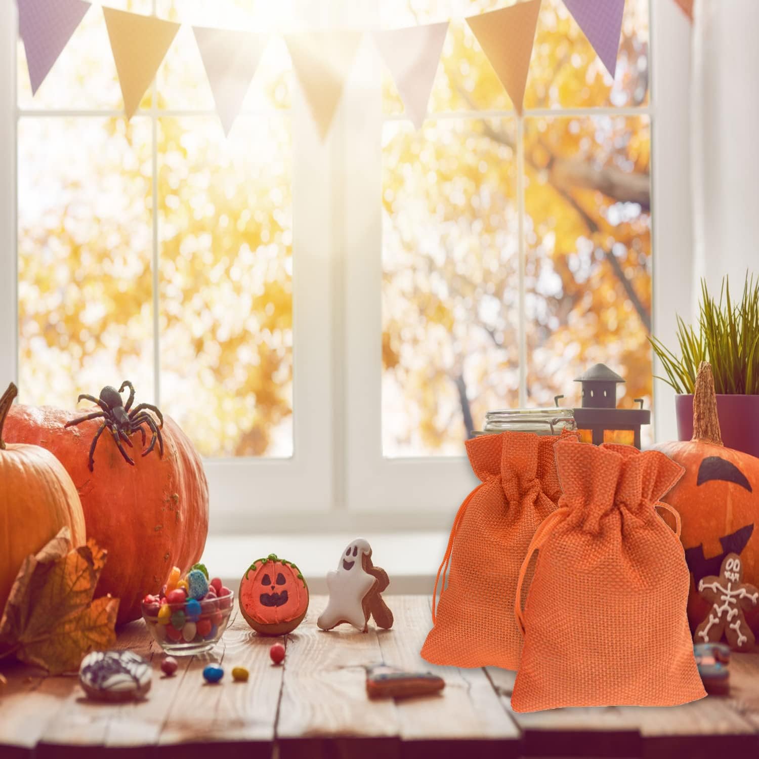 20Pcs Burlap Gift Bags 2.7 x 3.5 inch, Orange Jute Drawstring Bags for Halloween Party Favors, Jewelry Candy Pouches, Arts Crafts