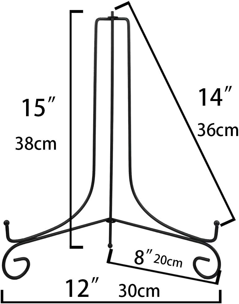 (2 pack)Iron Display Stand Large Black Iron Easel Plate Display Photo Holder Stand, Displays Picture Frames,Decorative Plates, Tablets and Art 15 Inch
