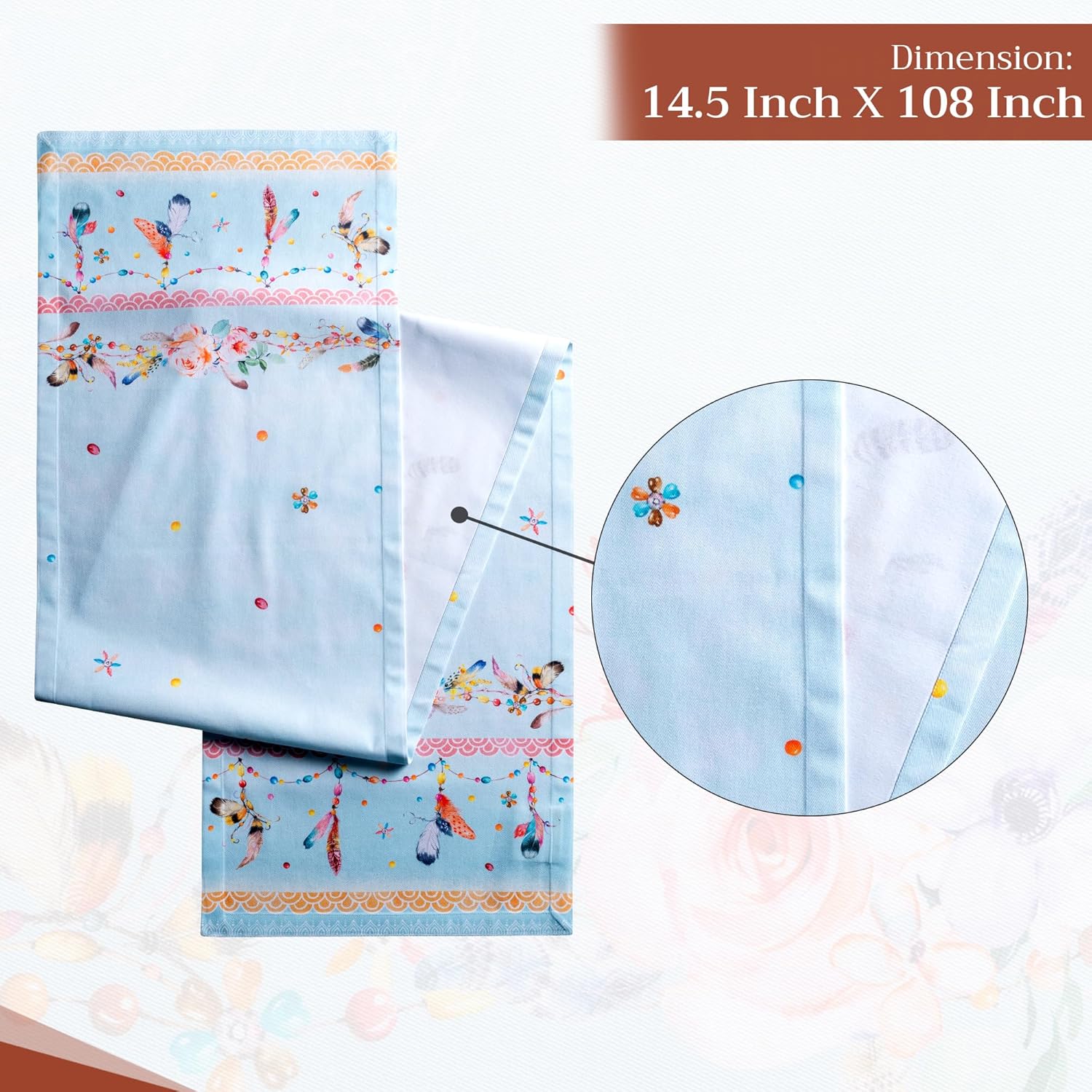 Maison d' Hermine Table Runner 100% Cotton Single Layer Table Runners 108 inches Long Decorative for Home Kitchen Dining Party Baby Shower Wedding Bridal Shower Spring Summer (Ibiza, 14.50" x 108")