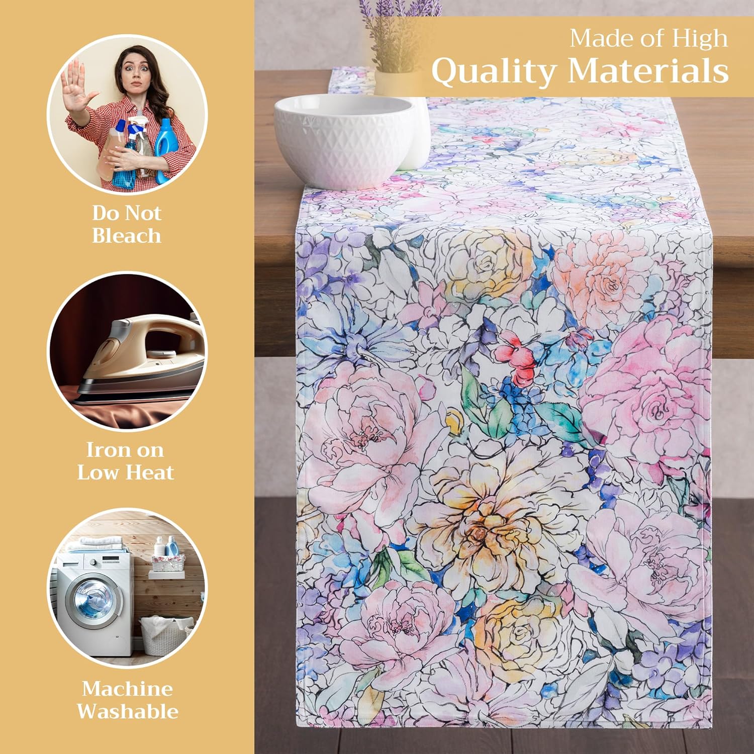 - Easy care & maintenance: Crafted from 100% cotton, this table runner is machine washable with like colors, do not bleach. Tumble dry on low and warm iron if needed. Durable and easy to maintain for everyday or seasonal use.