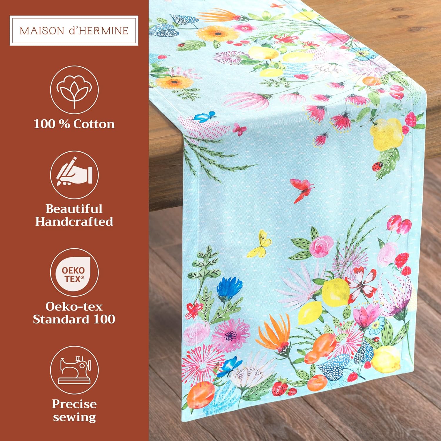 Maison d' Hermine Table Runner 100% Cotton Single Layer Table Runners 108 inches Long Decorative for Home Kitchen Dining Party Wedding Bridal Shower Spring Summer (Jardin D'Ete - Mint, 14.50" x 108")