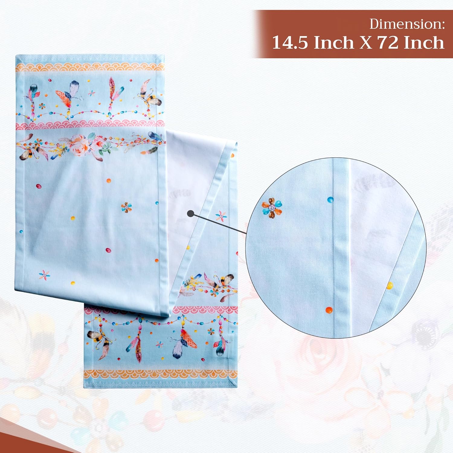 - Easy care & maintenance: Crafted from 100% cotton, this table runner is machine washable with like colors, do not bleach. Tumble dry on low and warm iron if needed. Durable and easy to maintain for everyday or seasonal use.