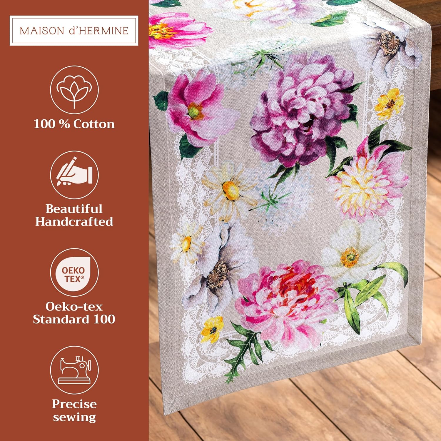 Maison d' Hermine Table Runner 100% Cotton Single Layer Table Runners 108 inches Long Decorative for Home Kitchen Dining Party Baby Shower Wedding Bridal Shower Spring Summer (Pivoine, 14.50" x 108")