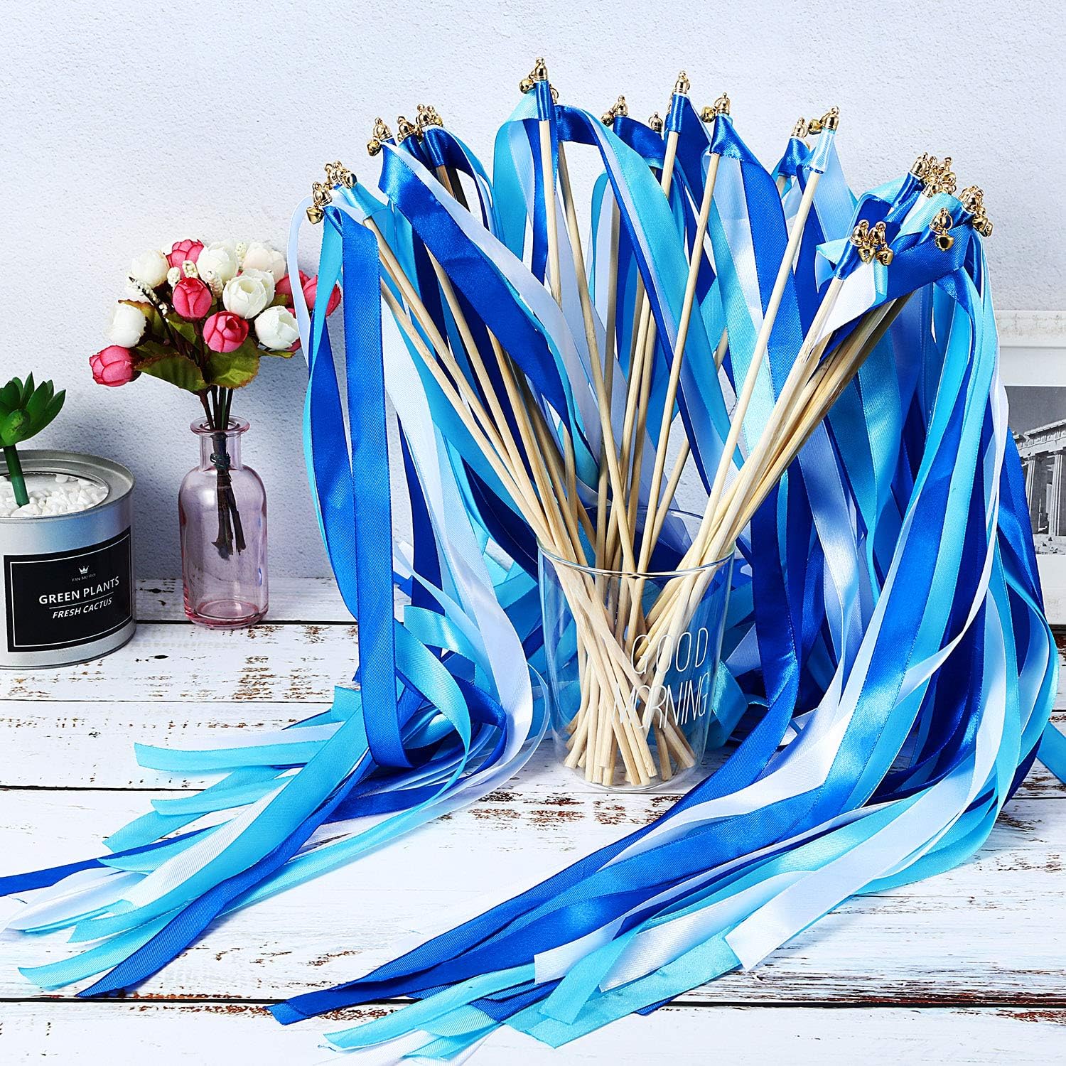 Boao 40 Pieces Mixed Color Ribbon Sticks with Bell, Ribbon Sticks for Stick Party, Streamers for Wedding Birthday Party Celebration Baby Shower Favors(Blue)