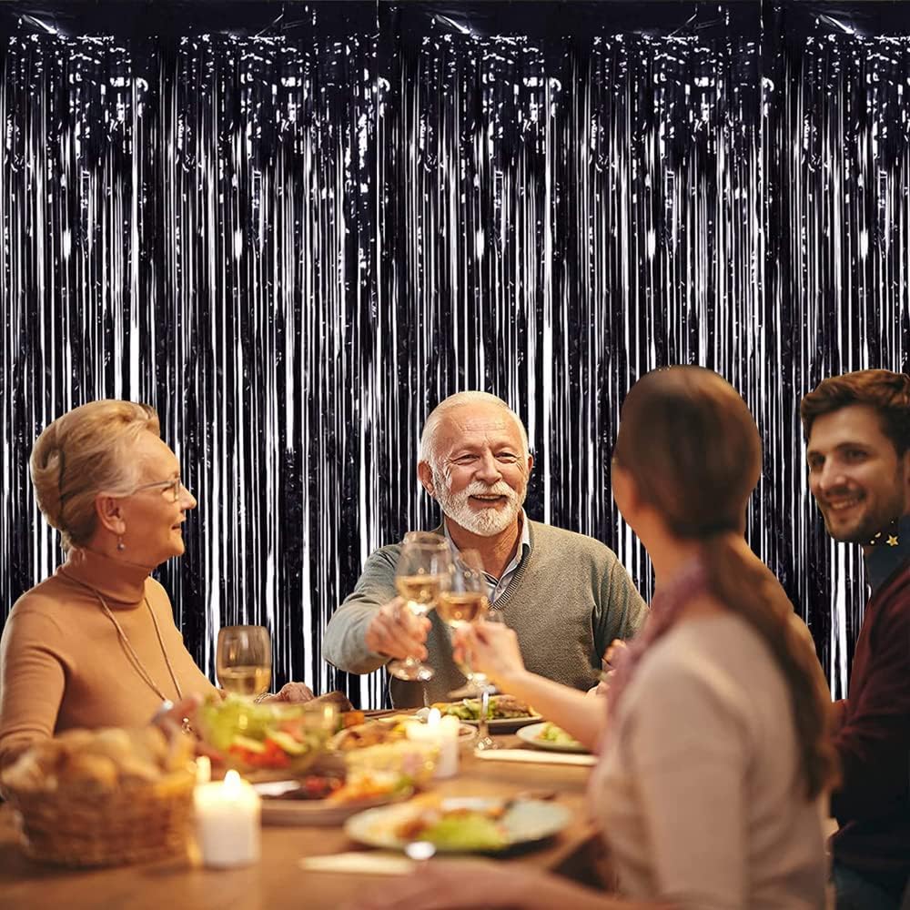 TONIFUL 3Pcs Black Door Streamers,Photo Booth Backdrop,Metallic Streamers Black Foil Fringe Curtains for Birthday,Christmas,New Year,St. Patrick's Day Halloween Party Streamers Decor(9.9ft x 6.6ft)