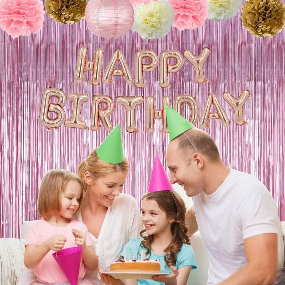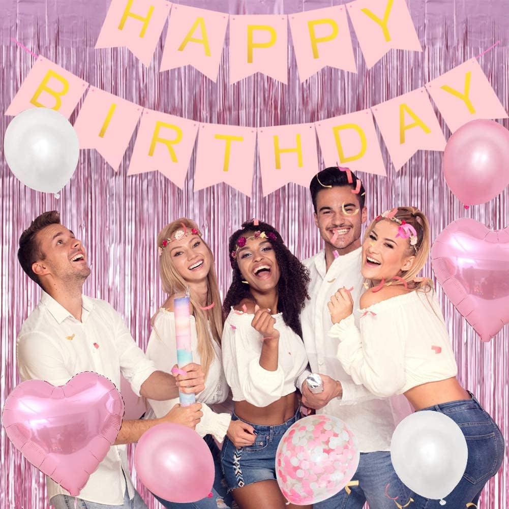 3Pcs Pink Metallic Tinsel Foil Fringe Curtains,3.28ft x 6.56ft Pink Photo Booth Backdrop Streamer Curtain,Photo Booth Props,Ideal Bachelorette Party Supplies,Birthday, Christmas,New Year Decorations