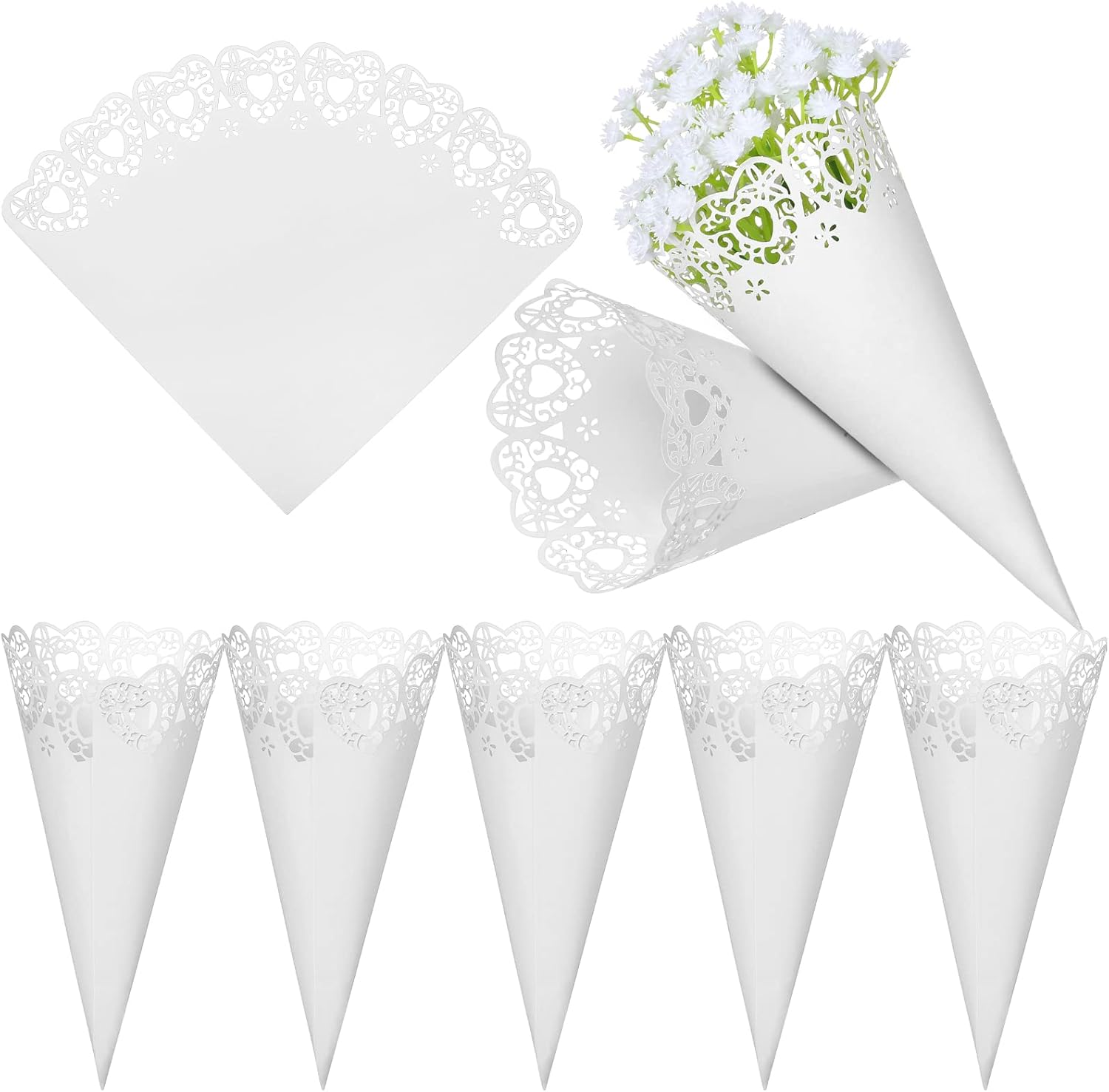 GWHOLE 100 Pcs Wedding Confetti Cones, Heart Paper Petal Cone for Wedding Party, White