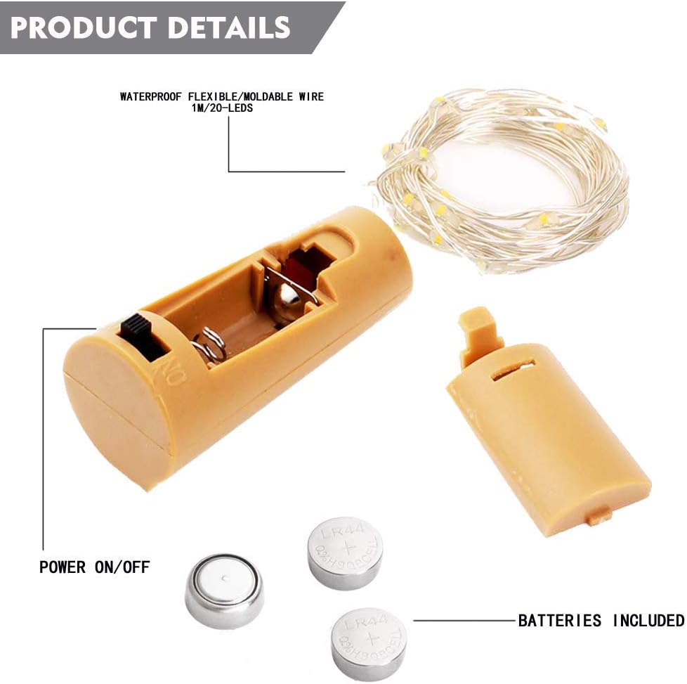 - Absolutely Flexible Copper Wires: uneasy to tangle compared to other super thin copper wires, StarryMine Bottle Lights 12 Pack 20LED Cork Light
