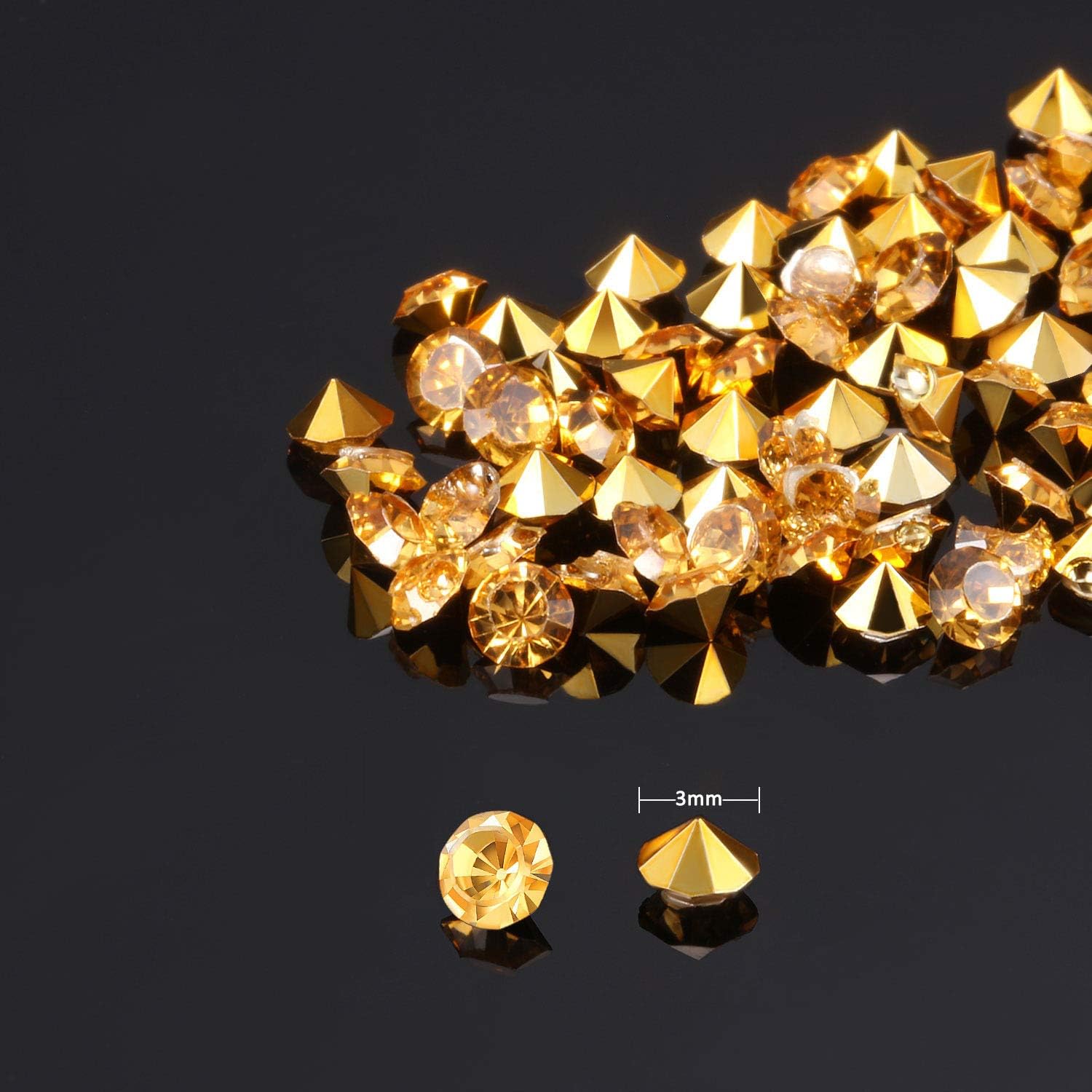 - Quantity and size: package includes 10000 pack gold acrylic diamonds; Each pack diameter measures about 3 mm/ 0.12 inch (please note these are faux diamonds and not real diamonds)