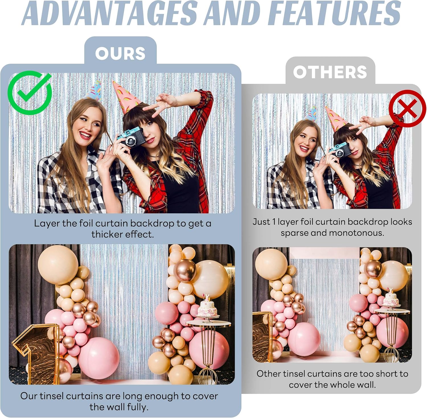 - Fantastic decoration:the beautiful tinsel backdrops are good for serving as party decorations, photography curtains, and so on; You will be surprised at the atmosphere and view they create