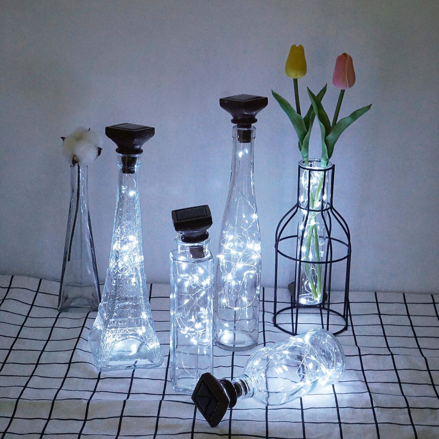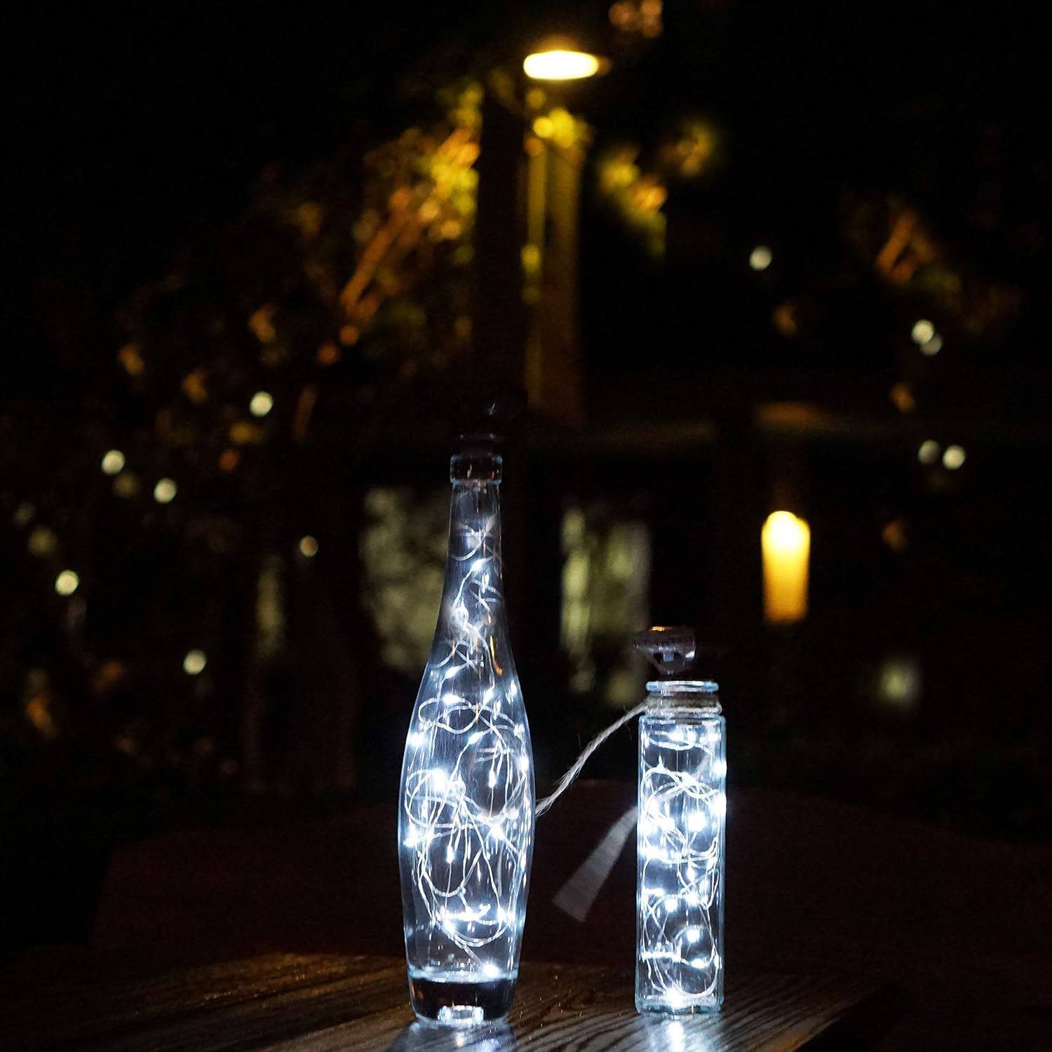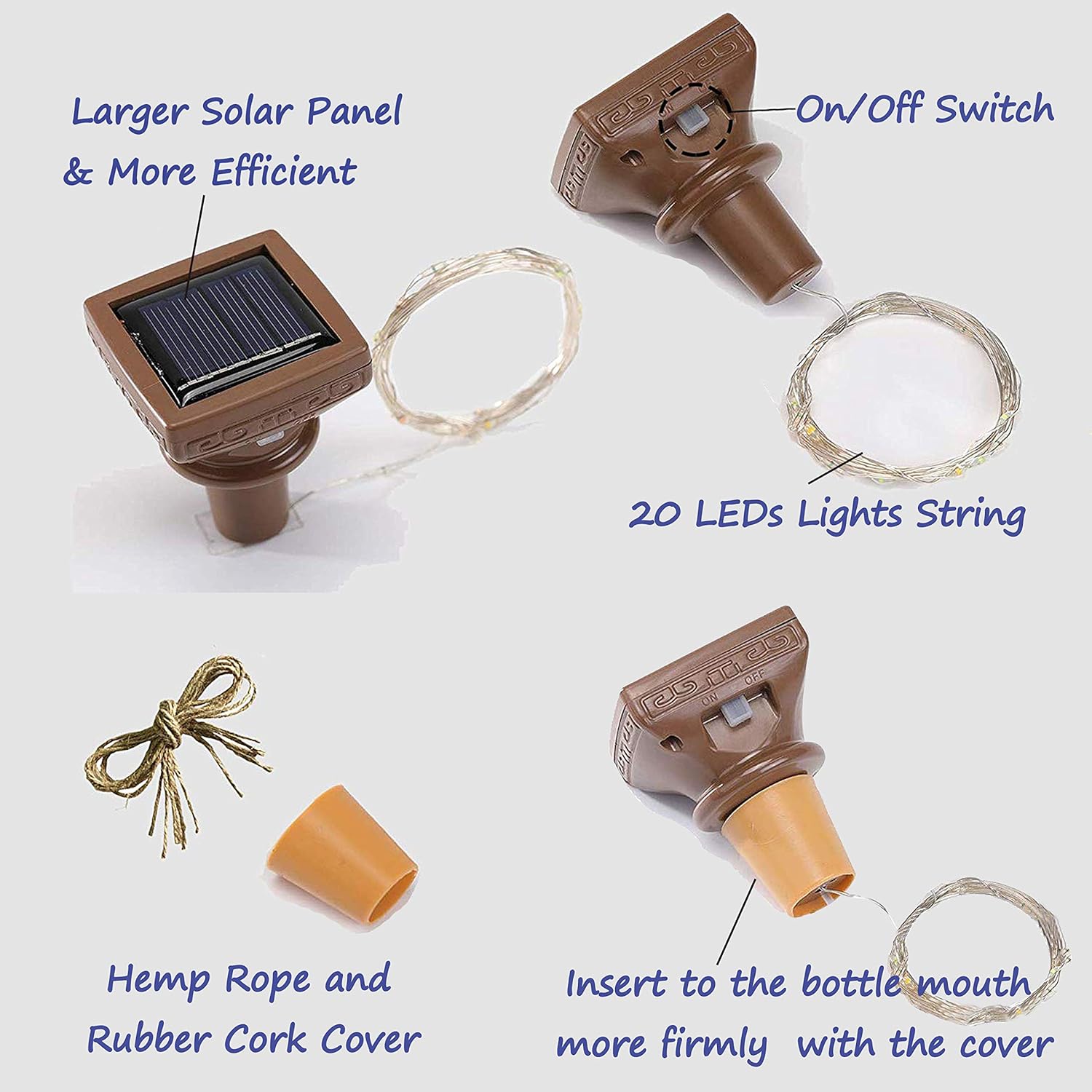 - Good Quality - Made of high-quality ultra silver copper wire. The Solar Square Bottle Cork Light is flexible, easy to bent and shaped, you can decorative empty bottle, Potted plants or anything as you like. And the wire lights are waterproof, so it will be absolutely safe if you want some water in the bottle (The corks are not waterproof)