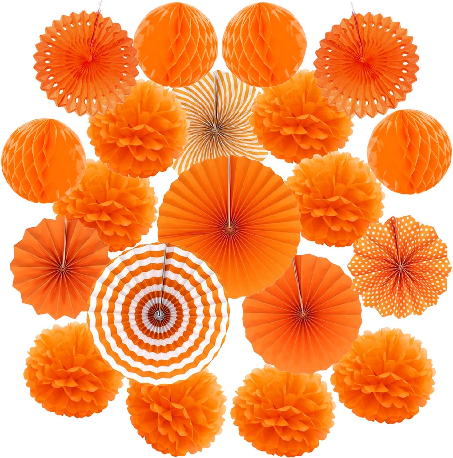 Hanging Paper Fan Set, Tissue Paper Pom Poms Flower Fan and Honeycomb Balls for Birthday Baby Shower Wedding Festival Decorations - Orange