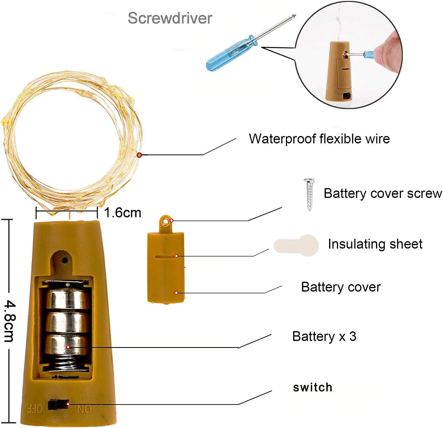 - Easy to Use and Install: Each cork with a ON/OFF switch. Easy to turn on and off switch (turn it off when you don’t need them)